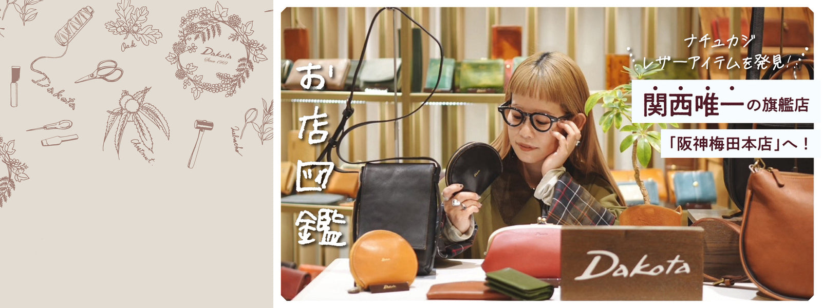 レザーやコットン、麻。 天然素材の持つ自然な風合いと感触。 本物だけが持つ質感を活かし、 Dakota(ダコタ)は、使うほどに愛着が湧く、 ナチュラルなカジュアルアイテムを創造します。 -