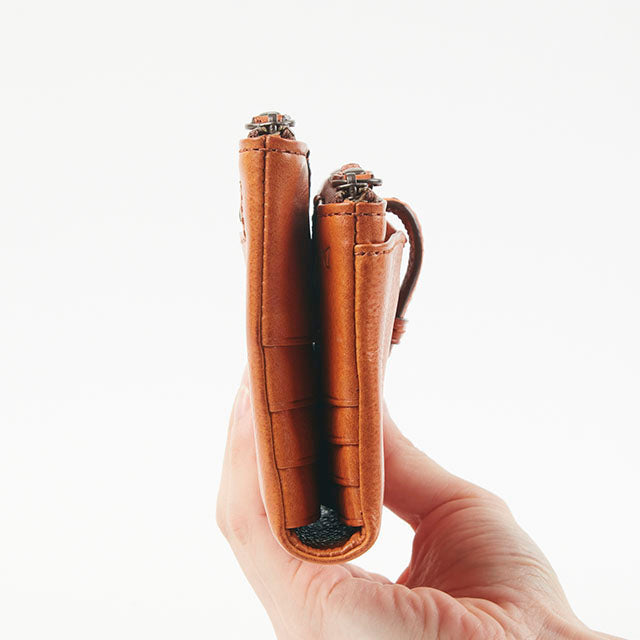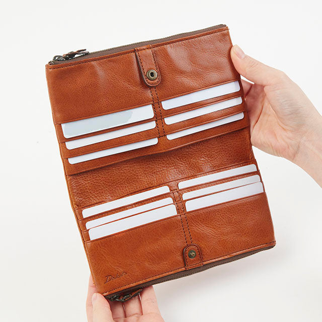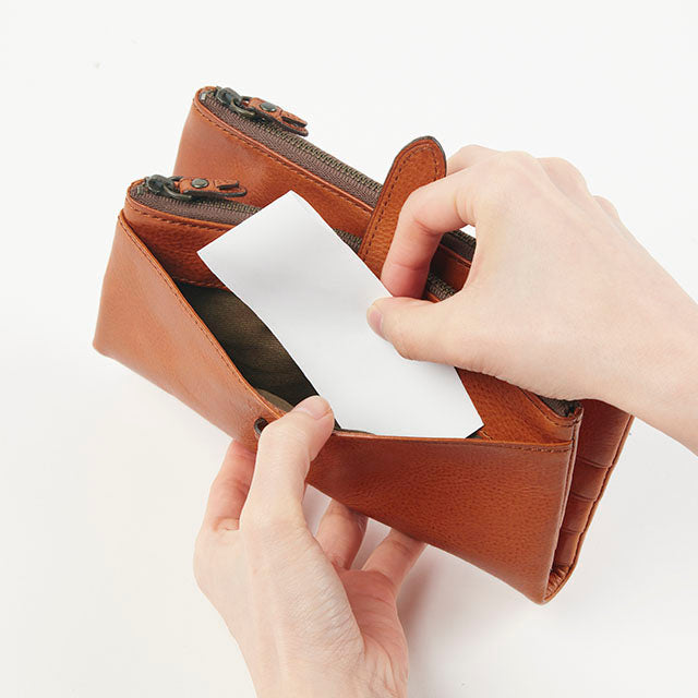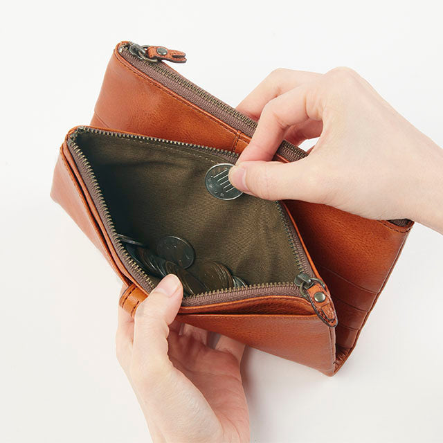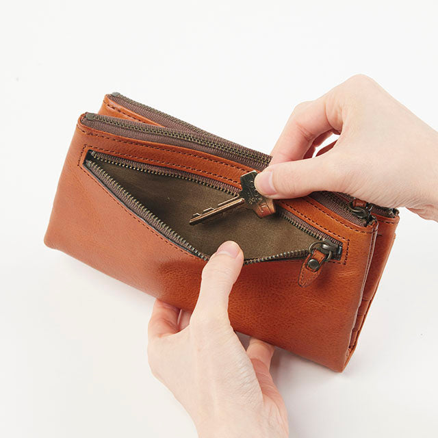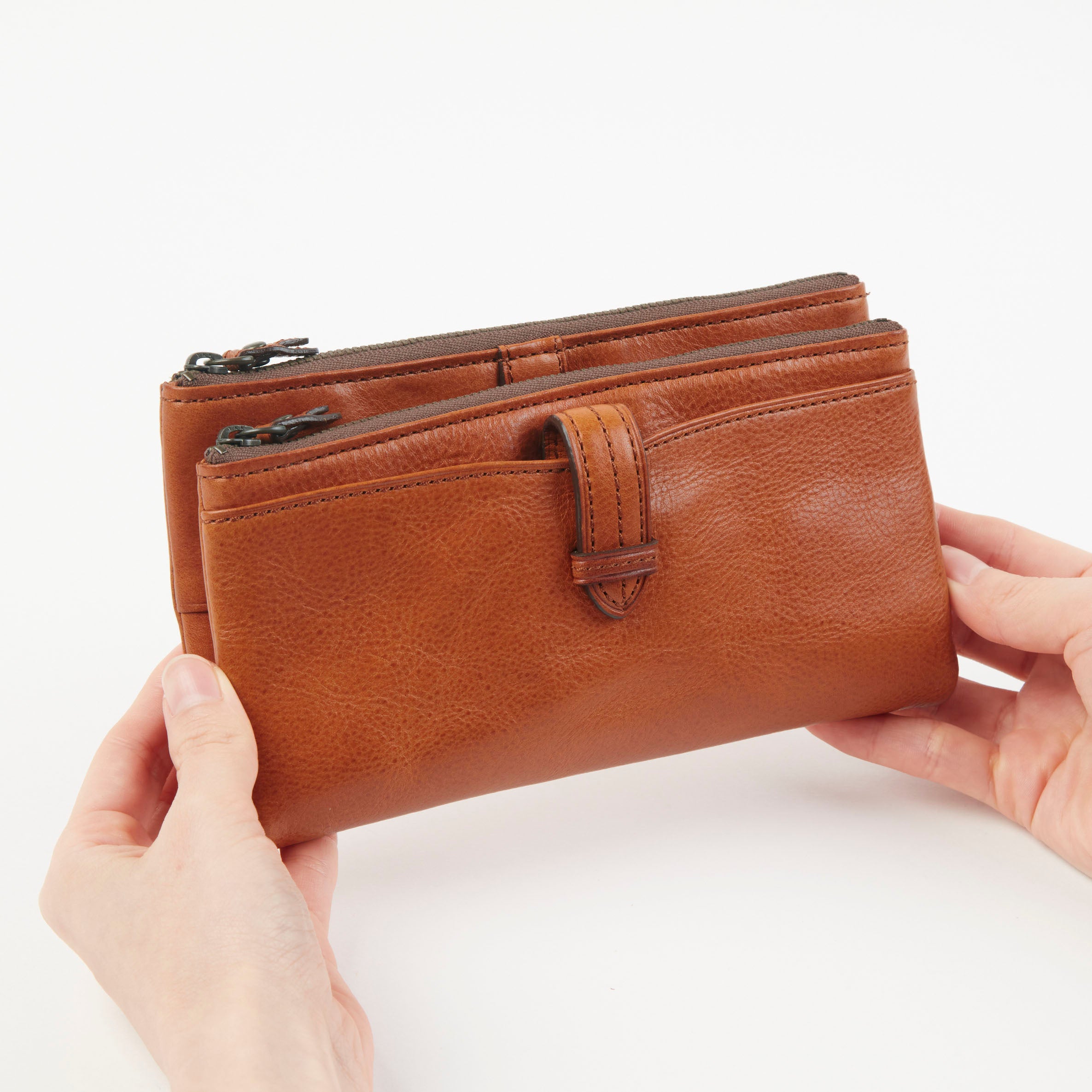 ファスナーポケットが2つ備わった、優れた収納力の長財布。大きめのファスナーポケットにはお札はもちろん、通帳を入れることもできます。どこに何を入れるか、使い方は持つ人次第。型にはまらないそのデザイン性が、長年愛されてきた理由です。
