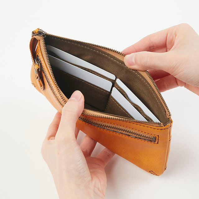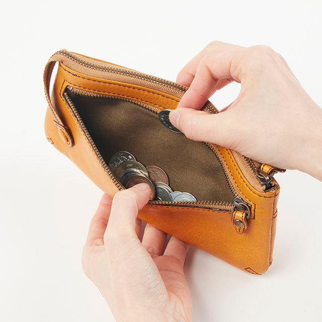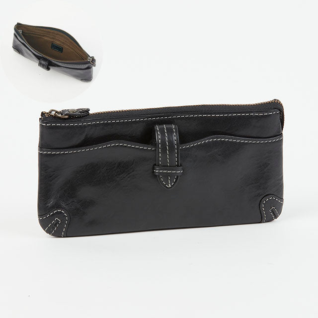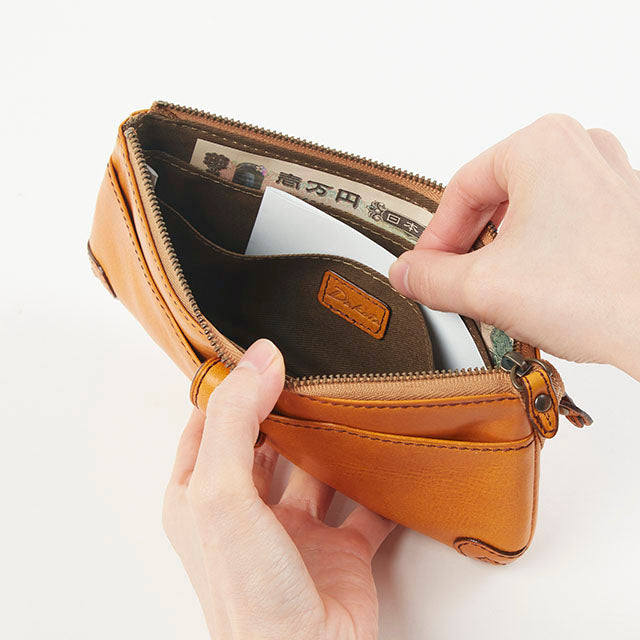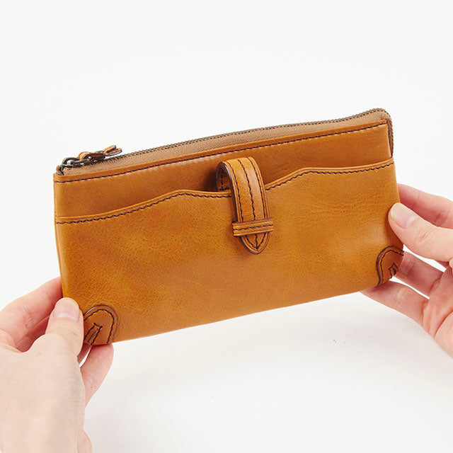 スッキリとしたフォルムのファスナータイプ長財布。紙幣がぴったり入るサイズ感で、手にもしっかりとフィットします。前面&背面ともにポケットが付いており、収納が充実した、シンプルで使いやすいデザインになっています。
