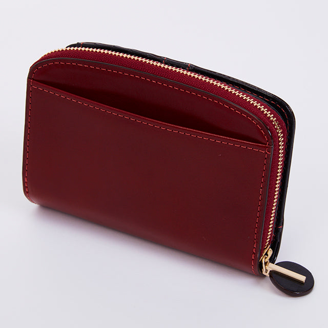 透明で艶のあるイタリアンレザーと、丸みを帯びたシルエットが特徴的なお財布シリーズ。