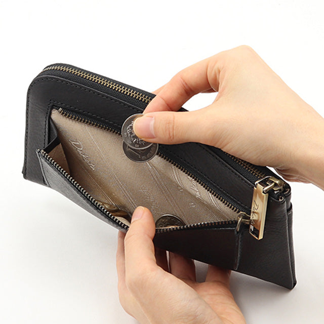 スマートな機能性が好評のL字ファスナータイプの長財布。内側のファスナーレス収納により、小銭もお札もカードも、ワンアクションで一目瞭然なのが魅力です。
