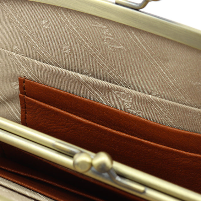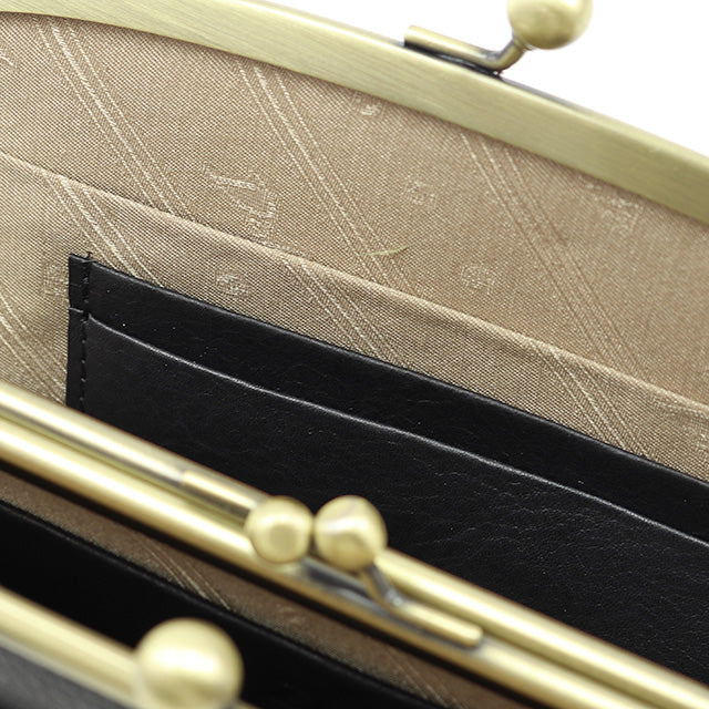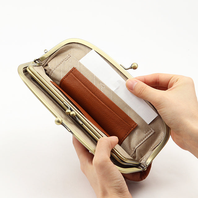 大きながま口の中にさらにがま口がある親子がま口財布。パチンとワンアクションで開閉ができるので、物の出し入れがしやすいデザインです。