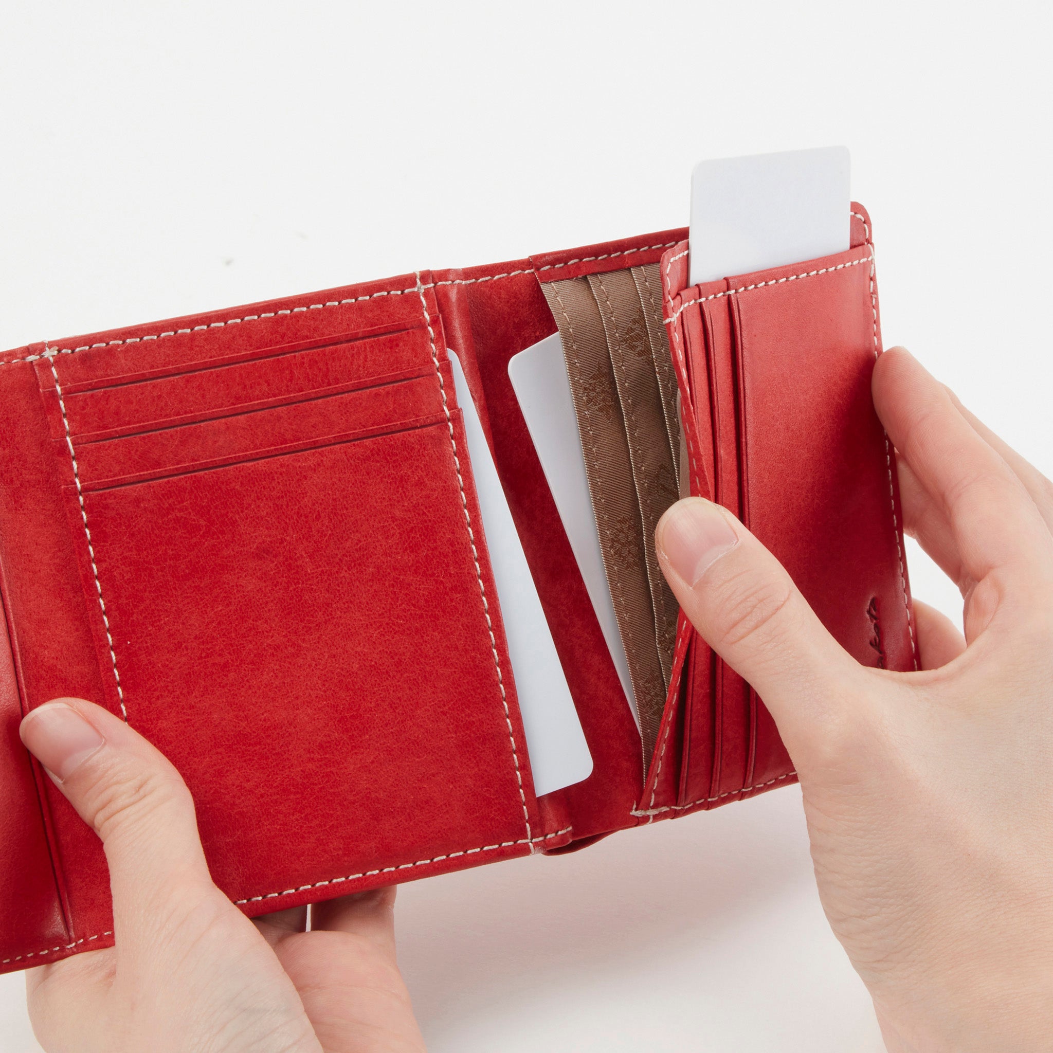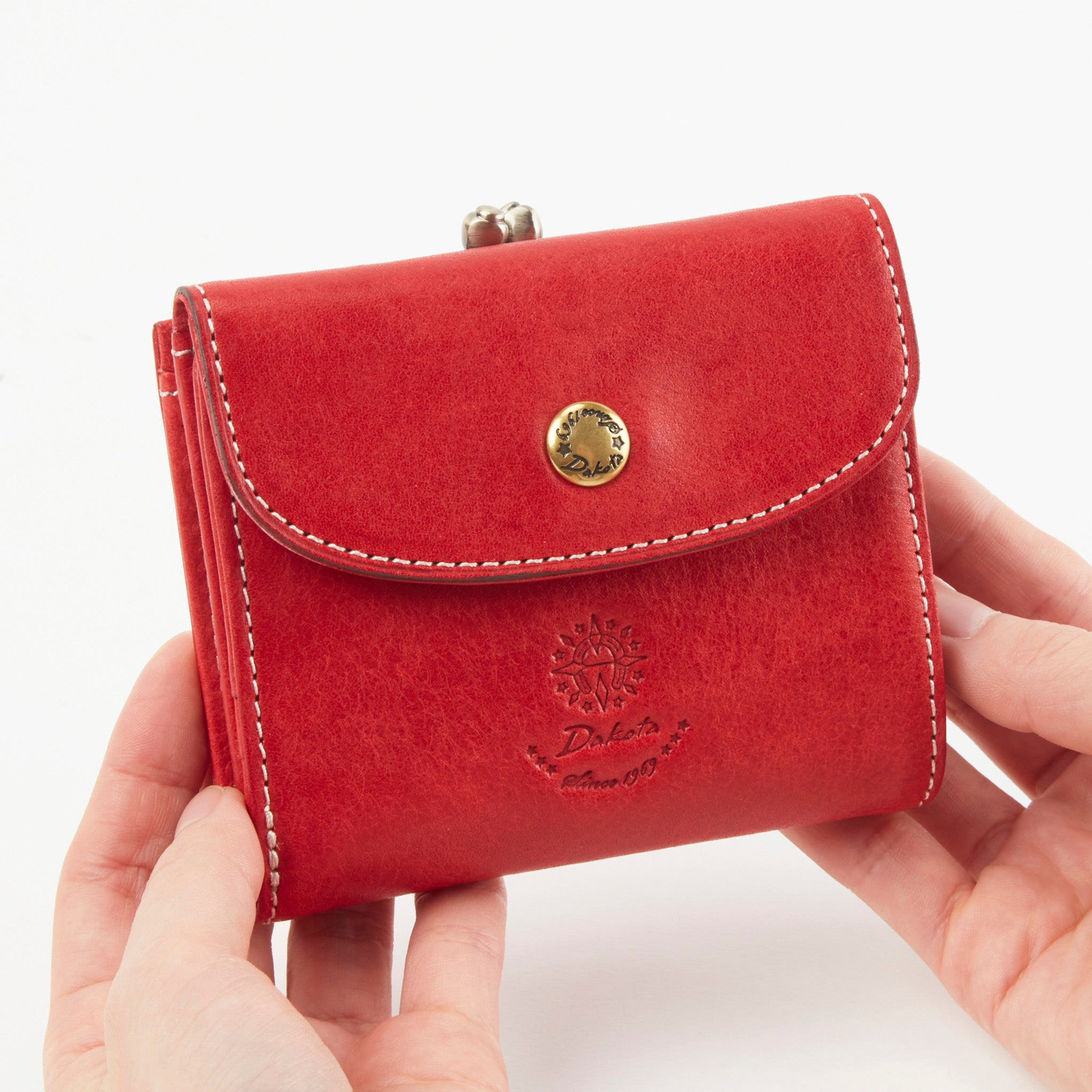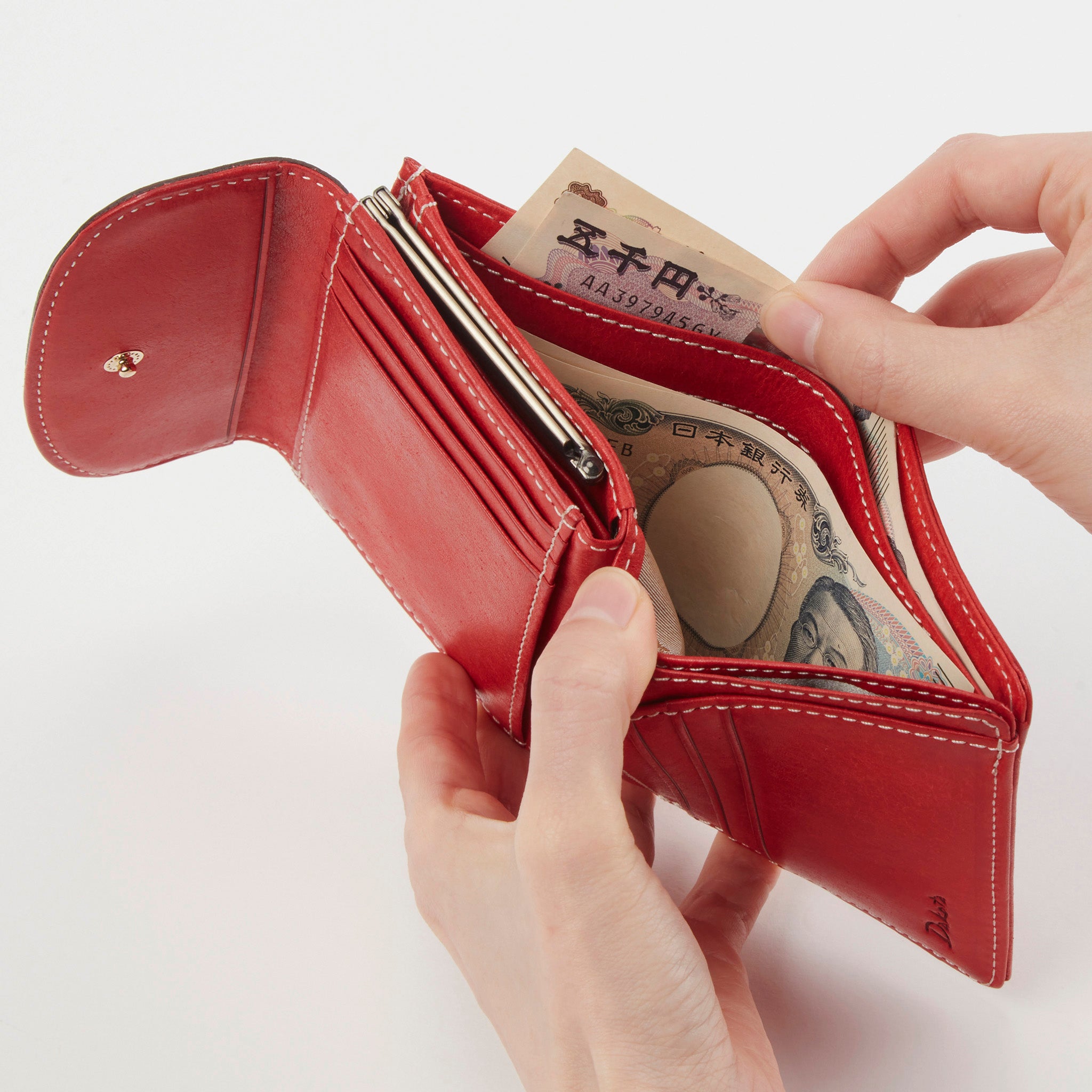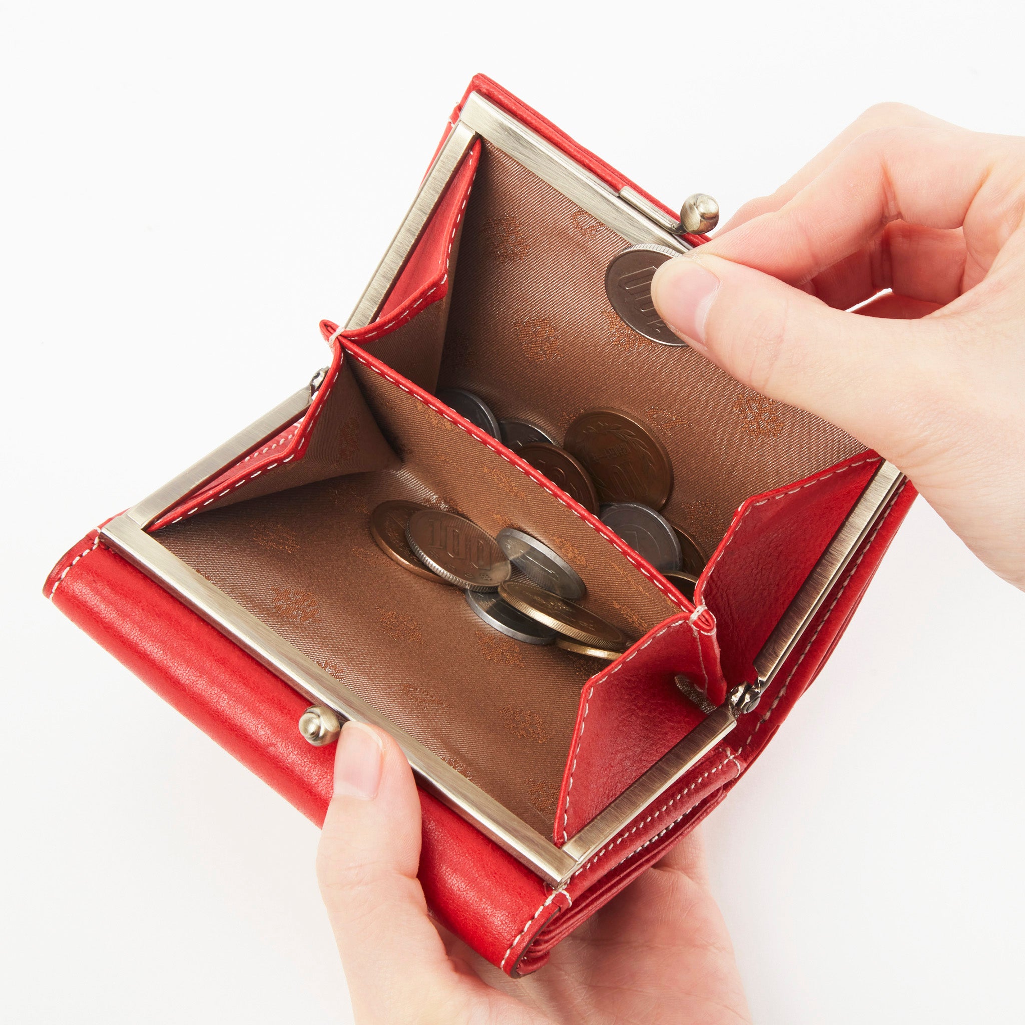 直線的ながま口がクラシカルな可愛さをプラスしている、がま口二つ折り財布。コンパクトながらも大きく開くがま口で、小銭の出し入れもラクラクです。カード収納も8か所あり、実用的な作りになっています。