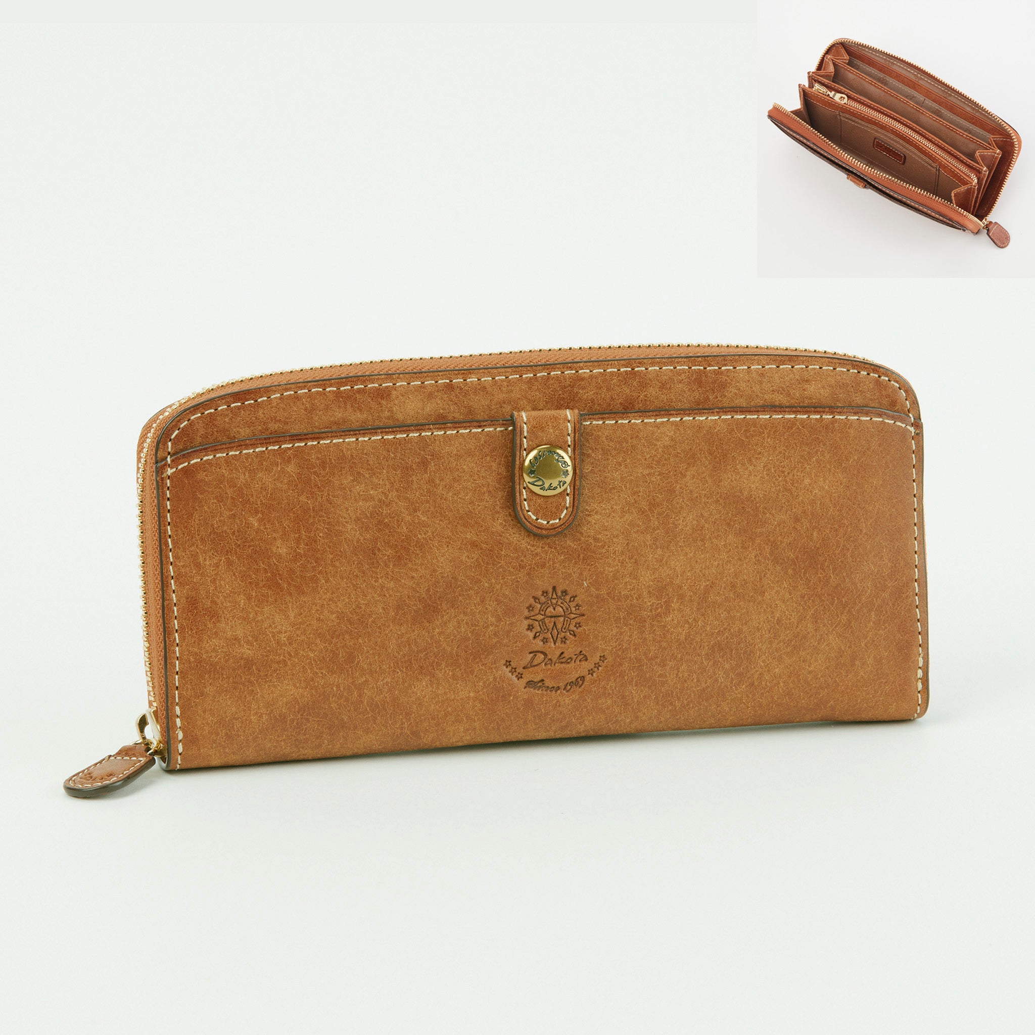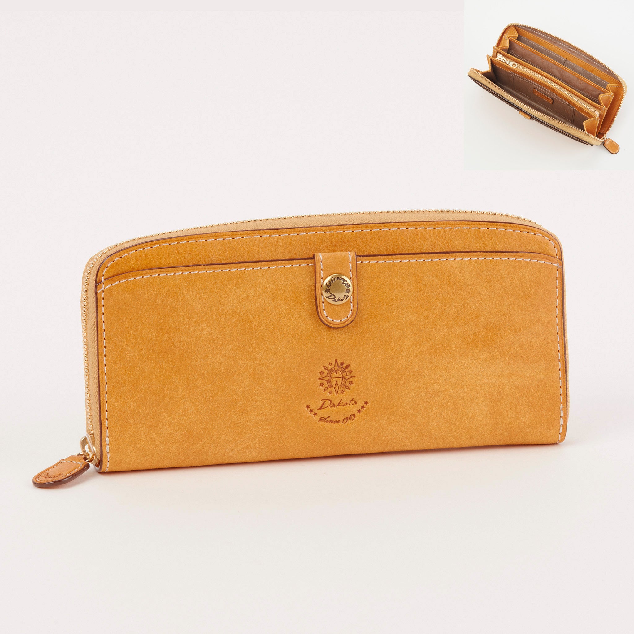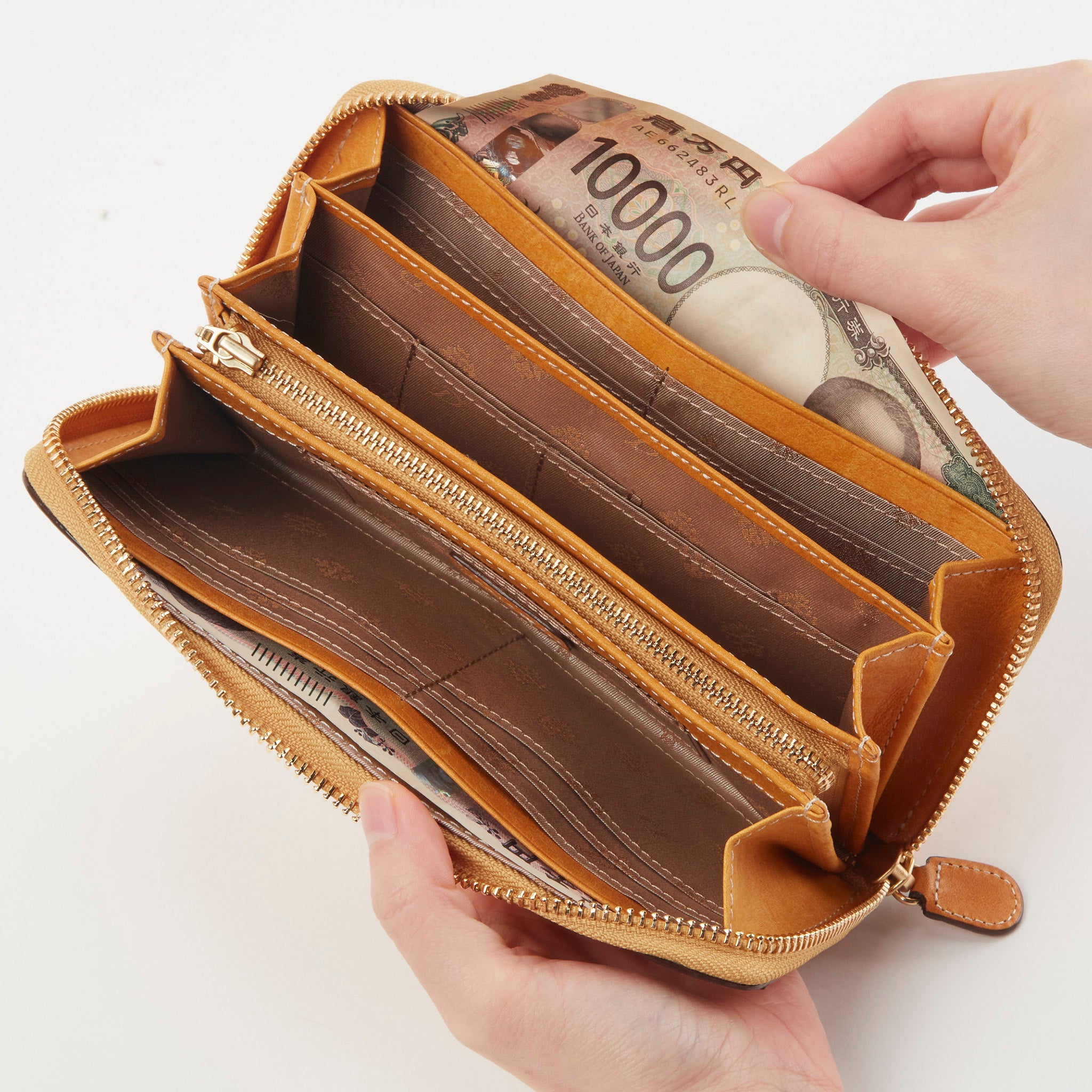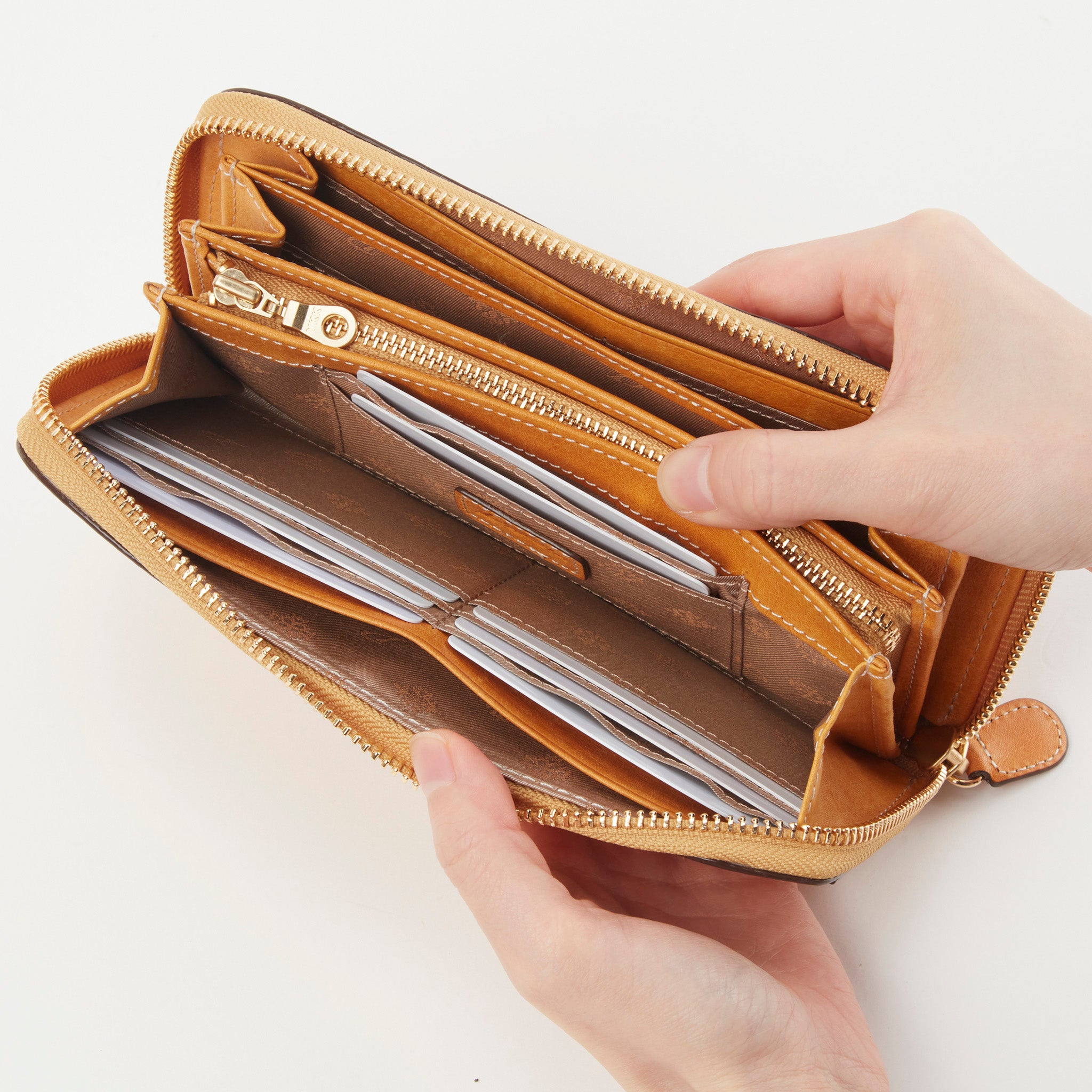 緩い弧を描くフォルムがやさしい印象の、ラウンドファスナータイプの長財布。内側のファスナー収納はL字型に大きく開き、小銭の出し入れがスムーズにできます。カードが22枚収納できる大容量で、機能的な作りです。