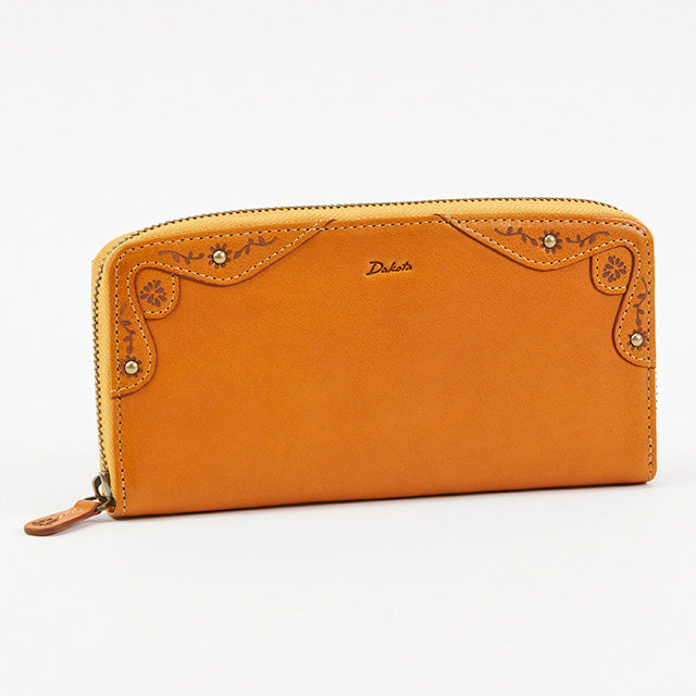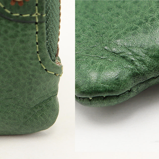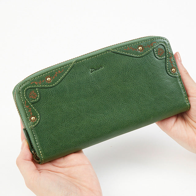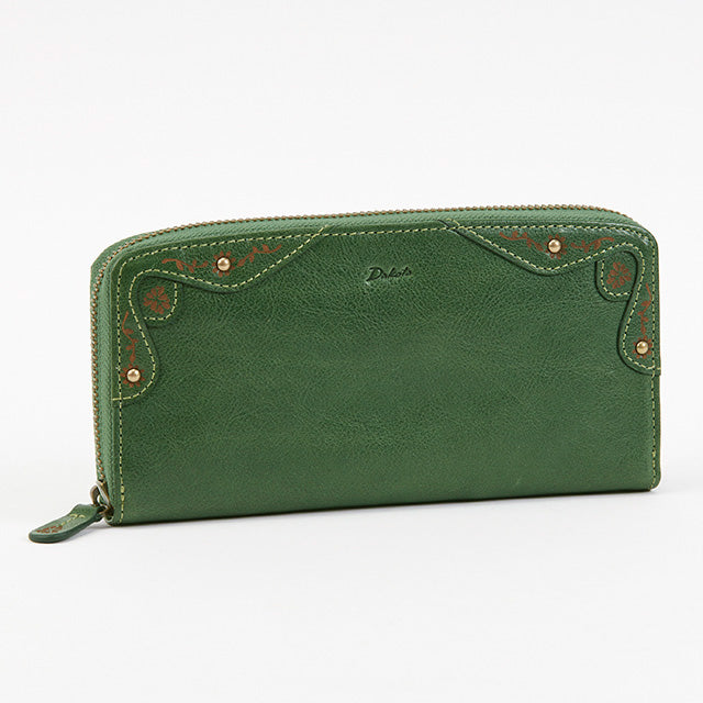 マーガレットで装飾されたお花の門をイメージし、クラシカルな雰囲気の縁取りを施しました。革の経年変化によってツヤや色の深みが増すイタリアンレザーの素材感と相まって、使い込むほどにクラシカルな雰囲気に。手に馴染むイタリアンレザーの手触りも存分にお楽しみください。