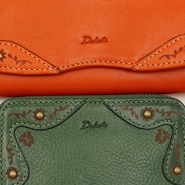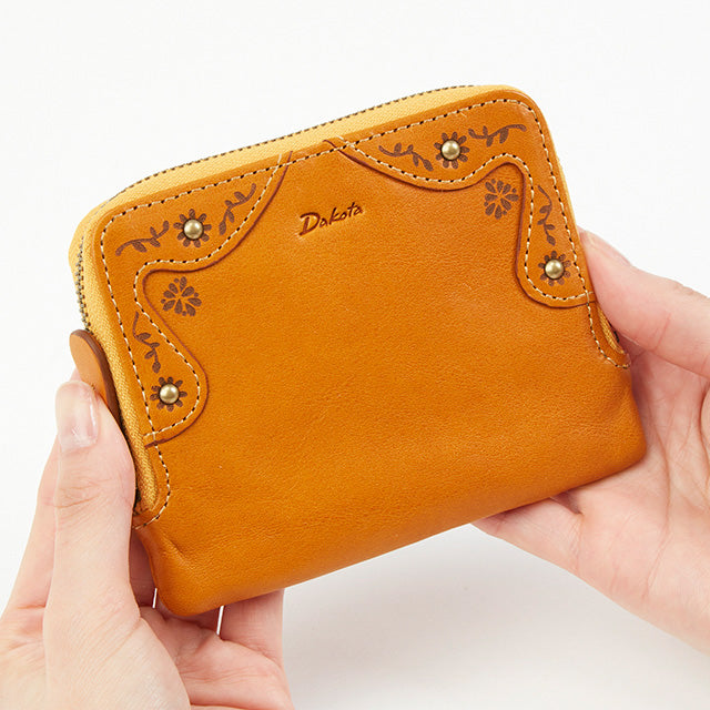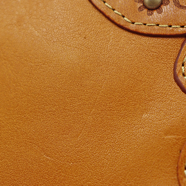 マーガレットで装飾されたお花の門をイメージし、クラシカルな雰囲気の縁取りを施しました。革の経年変化によってツヤや色の深みが増すイタリアンレザーの素材感と相まって、使い込むほどにクラシカルな雰囲気に。手に馴染むイタリアンレザーの手触りも存分にお楽しみください。