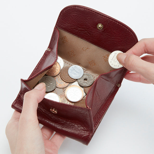 ボックス型小銭入れタイプの2つ折り財布。カードポケットは合計8箇所備わっており、コンパクトなデザインながら収納力もあります。お札入れスペースは、2つに仕切られているので、紙幣の整理もしやすい作りになっています。
