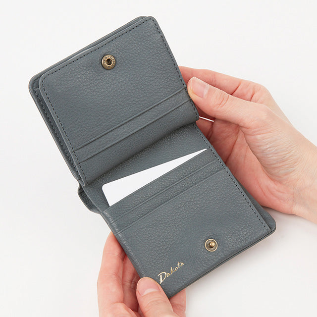 コンパクトに仕立てた二つ折り財布です。小銭入れはL字ファスナーで中身が見やすく、仕切り付きで整理もしやすくなっています。お札入れスペースにも仕切りが付いており、ミニマルなデザインながら機能性も十分のアイテムです。