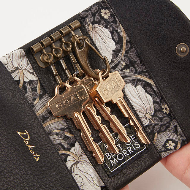 袋縫いでふっくら優しい印象が魅力のキーケースです。内側には、キーフックが4つ、キーチェーンが1つ付いています。優しい牛革のカラーリングと、「BEST OF MORRIS」の柄生地の組み合わせを楽しむことができます。ギフトにもおすすめのアイテムです。