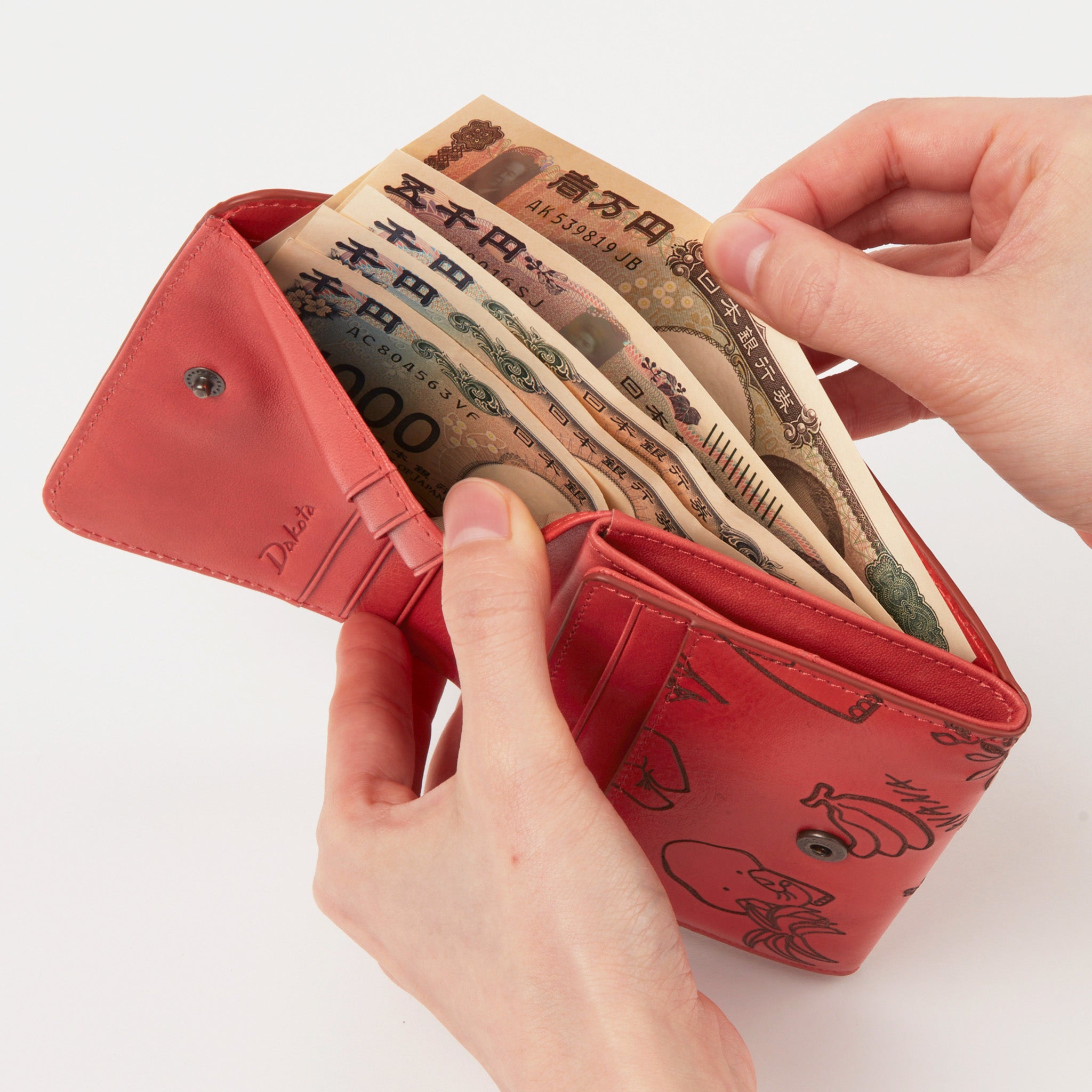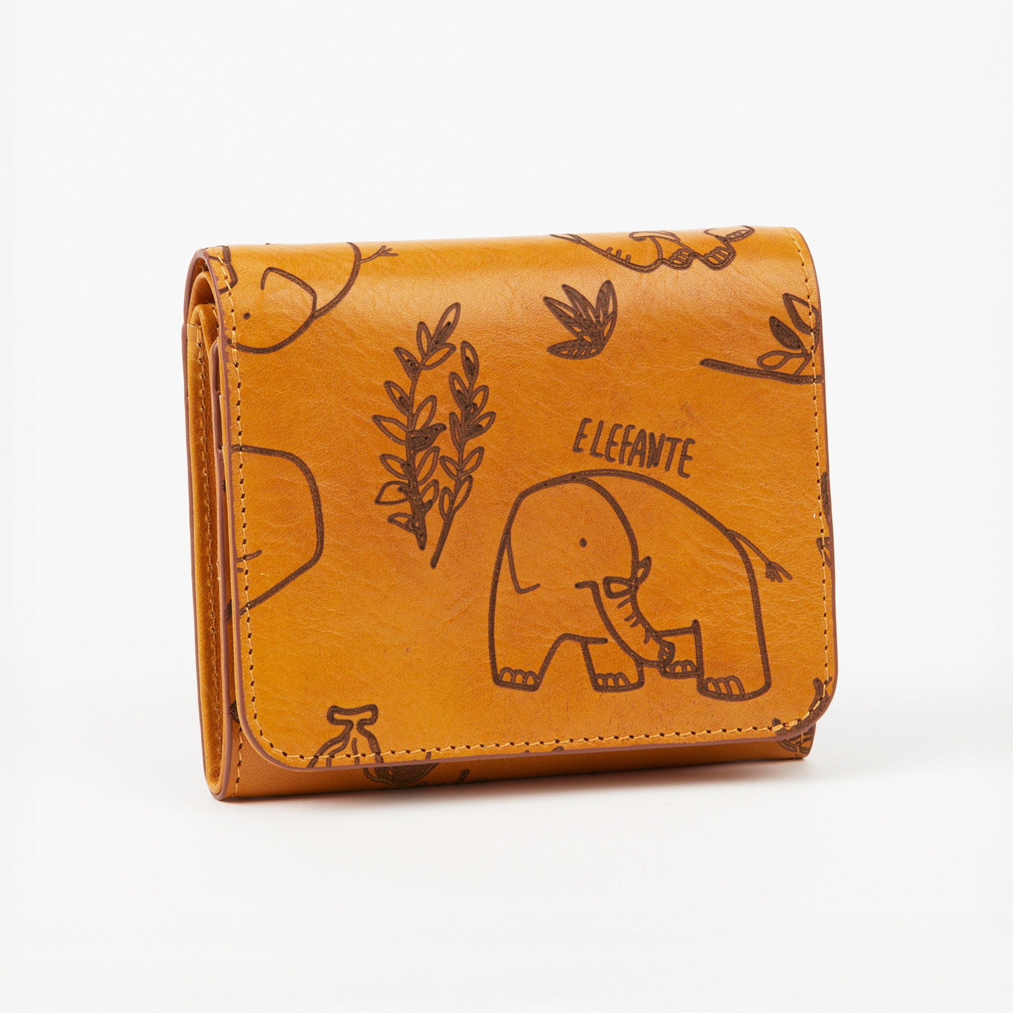 自由気ままに過ごすゾウたちを描いた、イタリアンレザーのお財布シリーズ。
