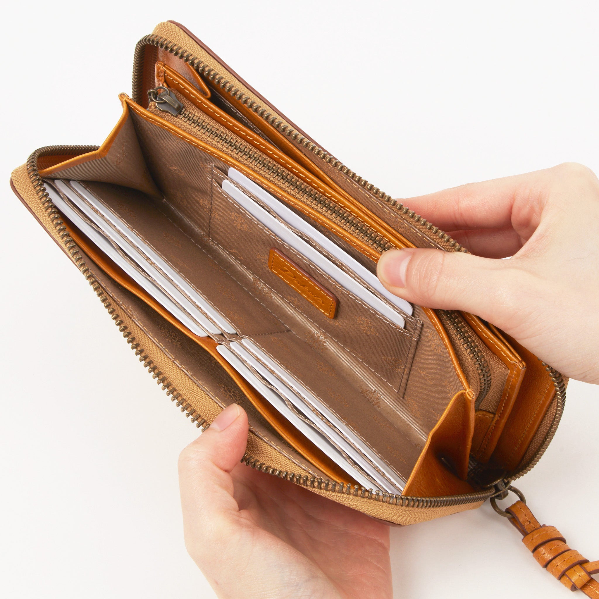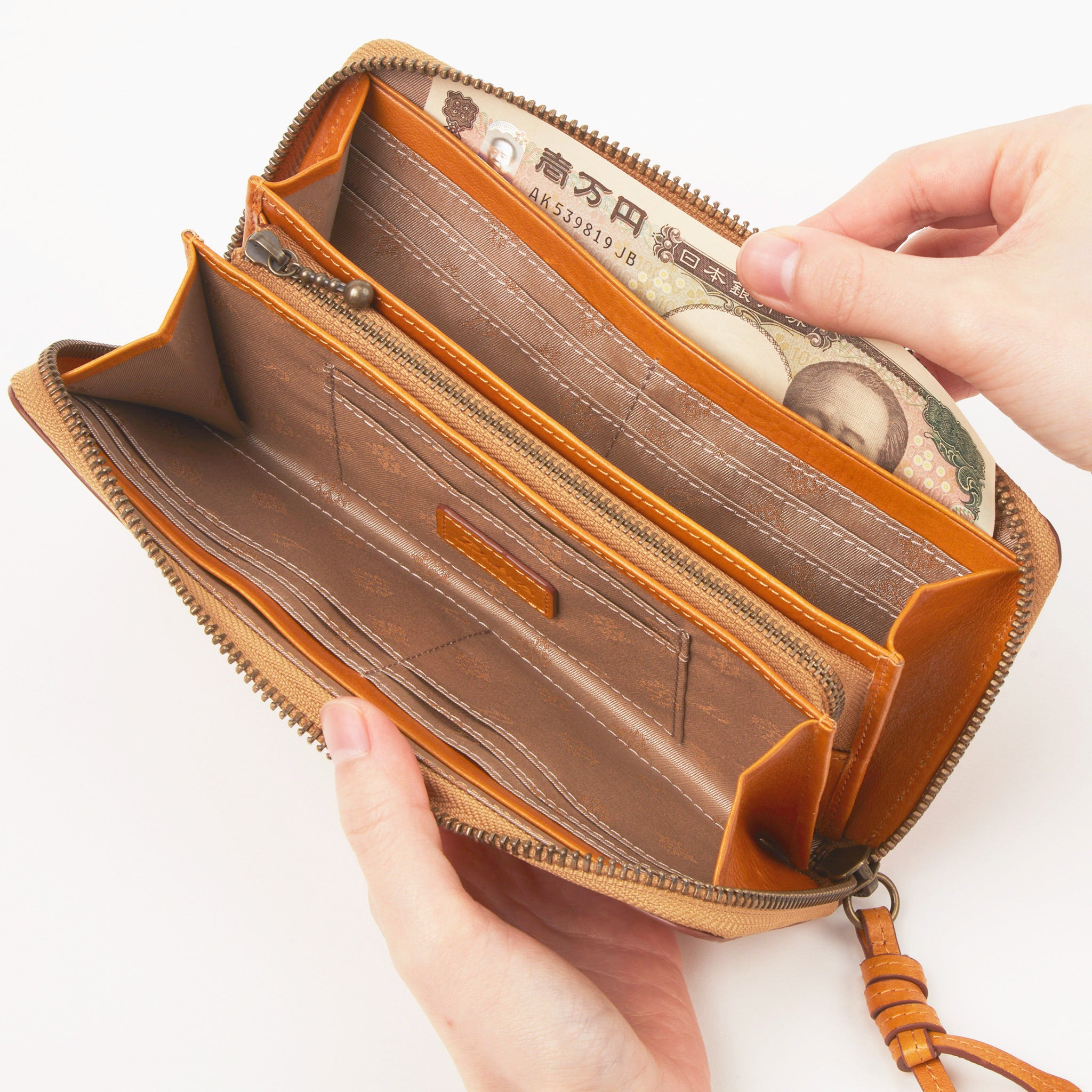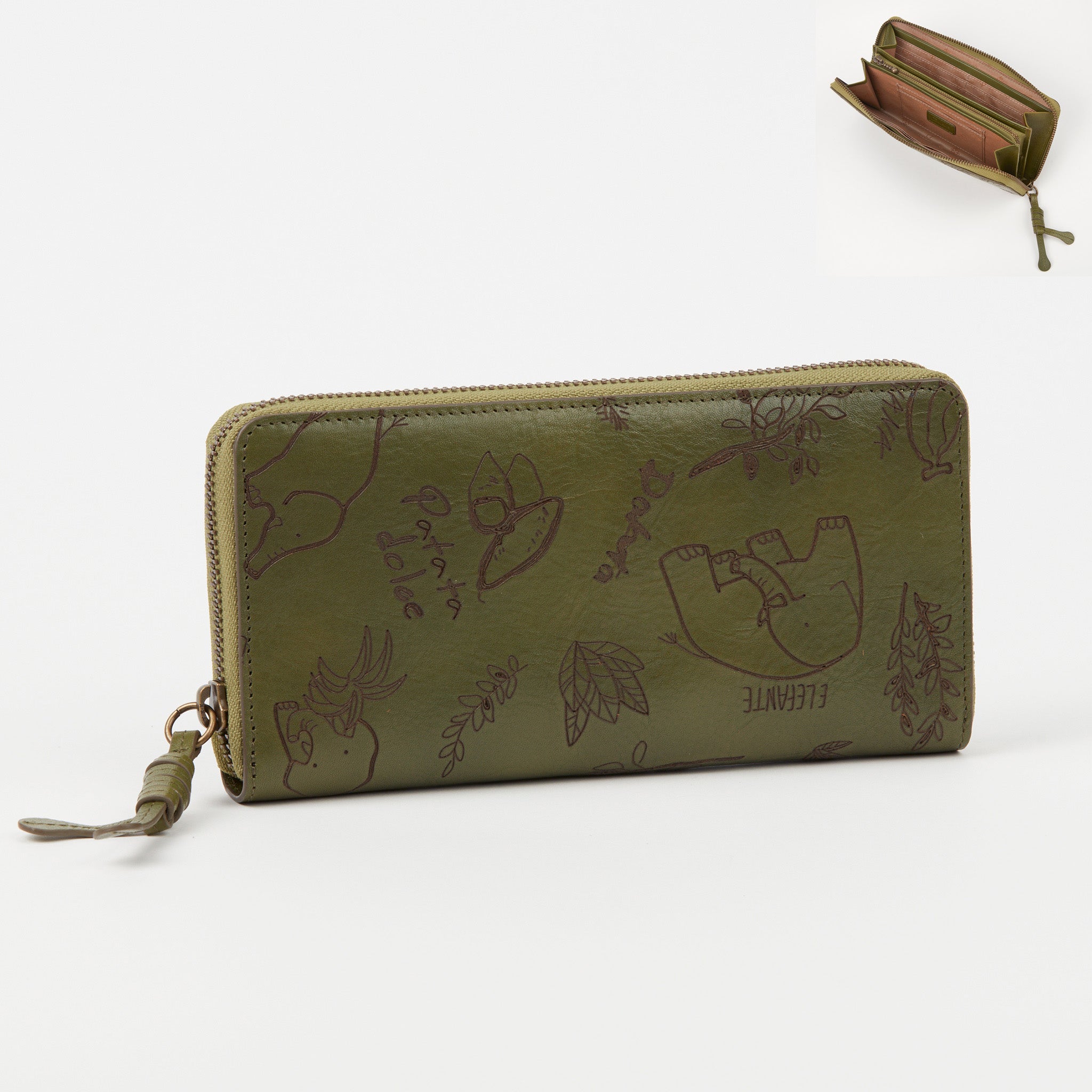 自由気ままに過ごすゾウたちを描いた、イタリアンレザーのお財布シリーズ。