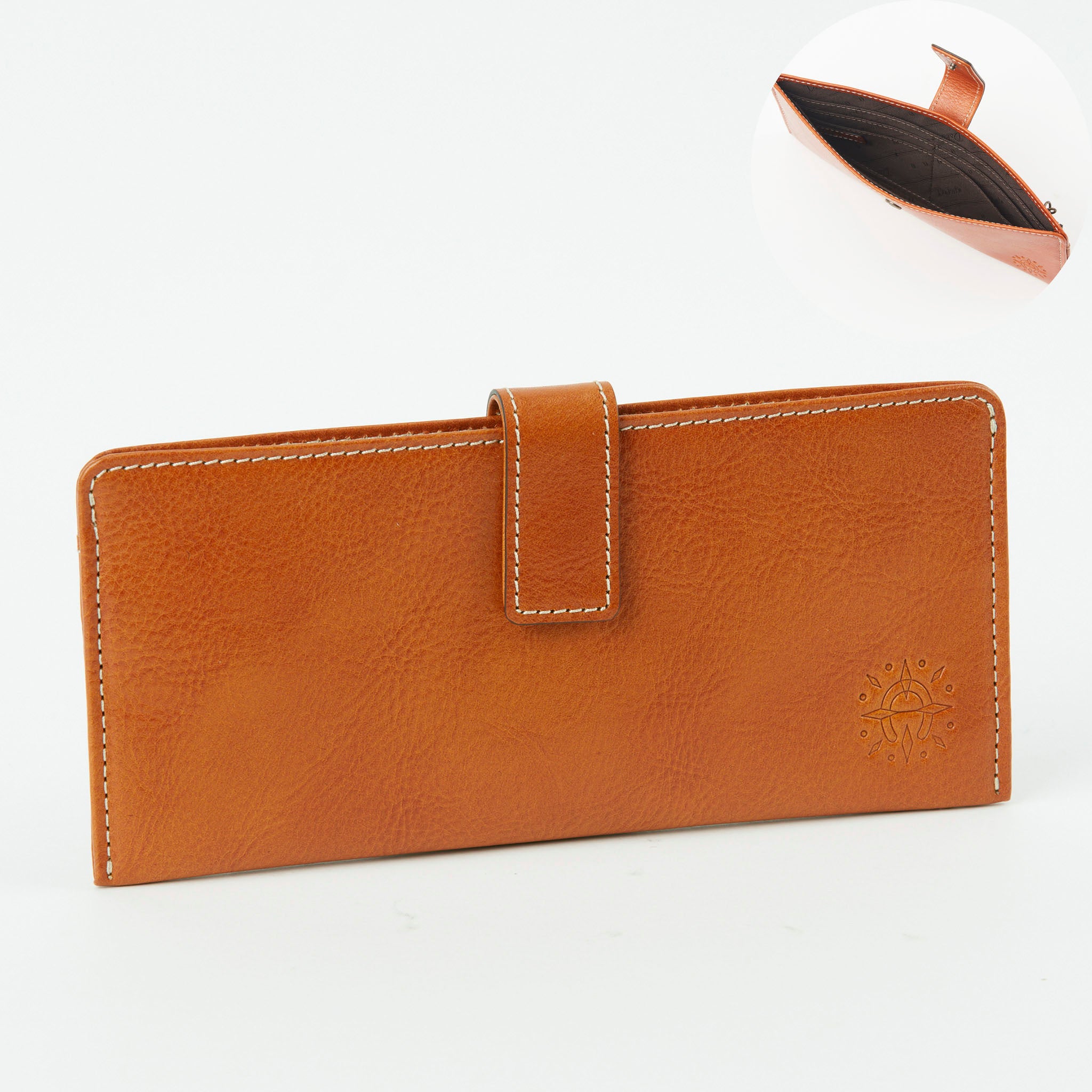 マチのないスリムなフォルムの長財布。ベロ付きのホックボタン開閉で、中には、カードポケットが8つ付いた紙幣も収納できるオープンスペースが備わっています。背面には、外ファスナーポケット小銭入れが付いています。
