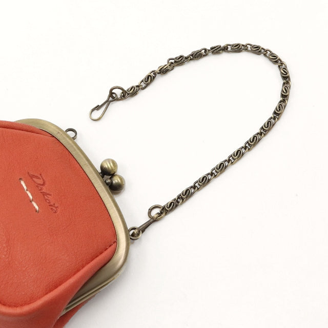 コロンとしたフォルムの、手の平サイズの小銭入れ。チェーン付きで、バッグのハンドルにチャームのように引っかけることもできます。贈り物にもおすすめのアイテムです。