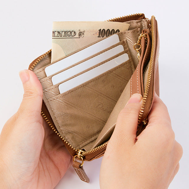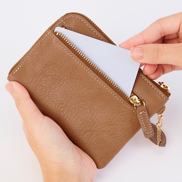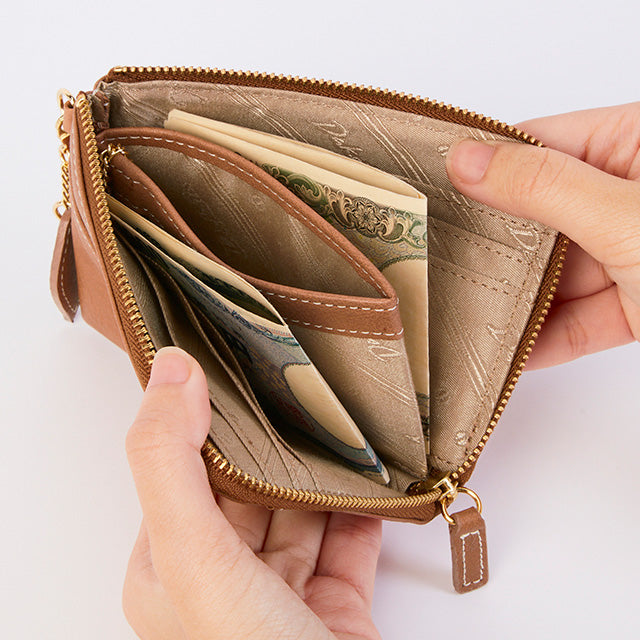 お札・小銭・カードをコンパクトに収納できる、スリムなお財布です。取り外し可能なキーチェーンも付属していて、鍵も一緒に持ち歩きたいという時にも大活躍。ミニバッグでのお出かけや、お荷物を軽くしたいときにも重宝してくれます。