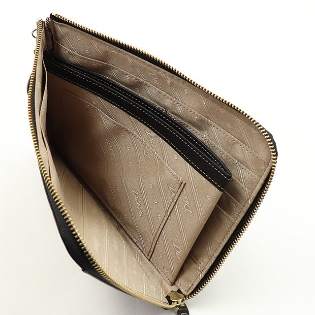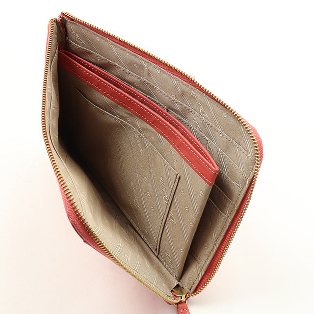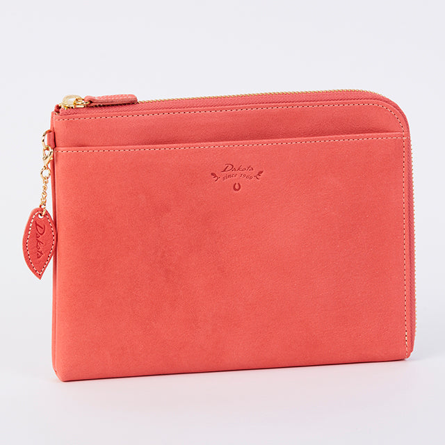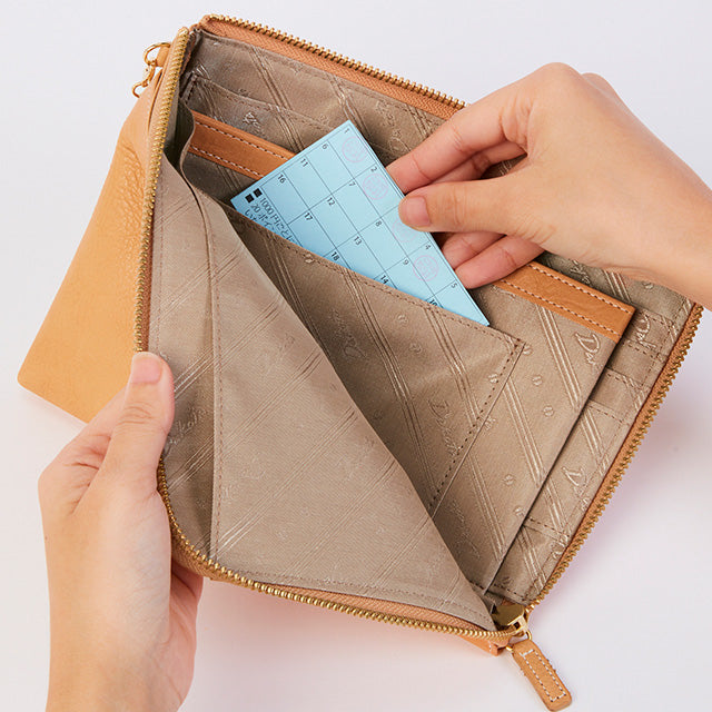 母子手帳ケースや、貴重品ケースとして重宝する、B6サイズ対応のポーチです。L字型ファスナーを採用しているため、テーブルなどに置かなくても出し入れがしやすいデザインとなっています。内側にはカード収納が8個あり、オープンポケットも充実していて、母子手帳などの他にも保険証や診察券、又はパスポートや通帳などの貴重品をまとめて持ち歩くのに便利です。