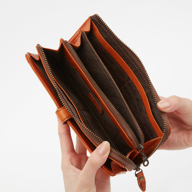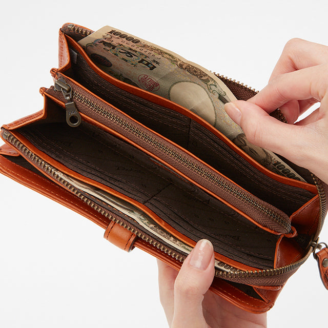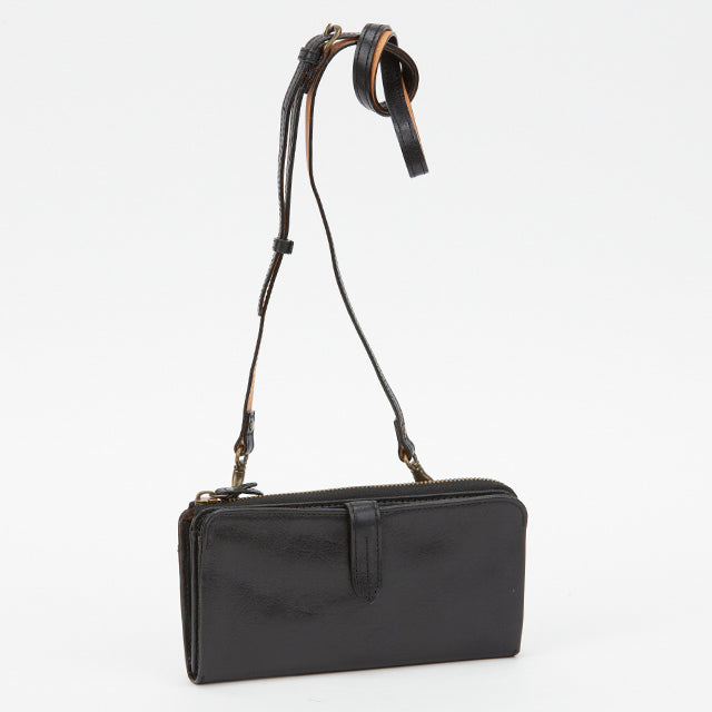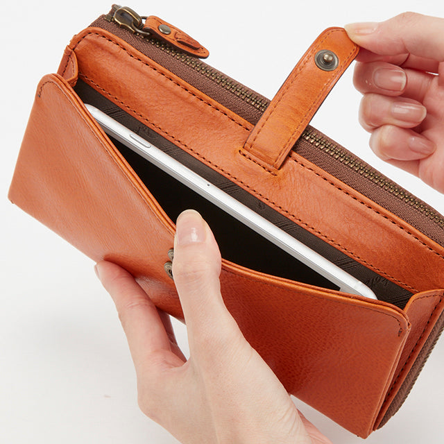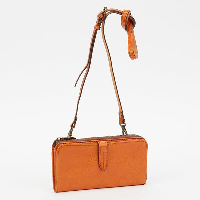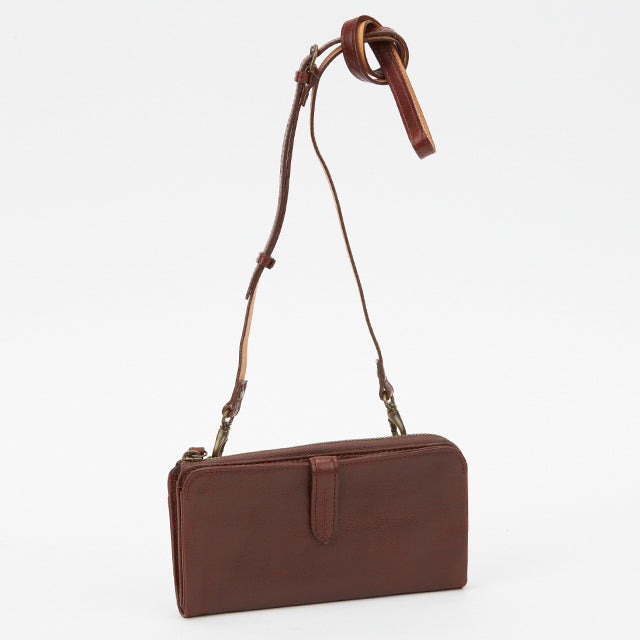 スマホと財布を身軽に持ち歩ける、ショルダー紐付き長財布。