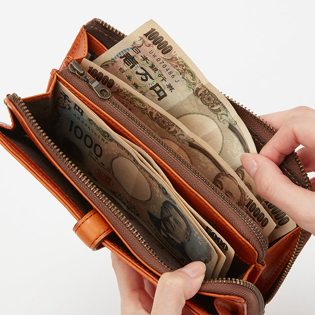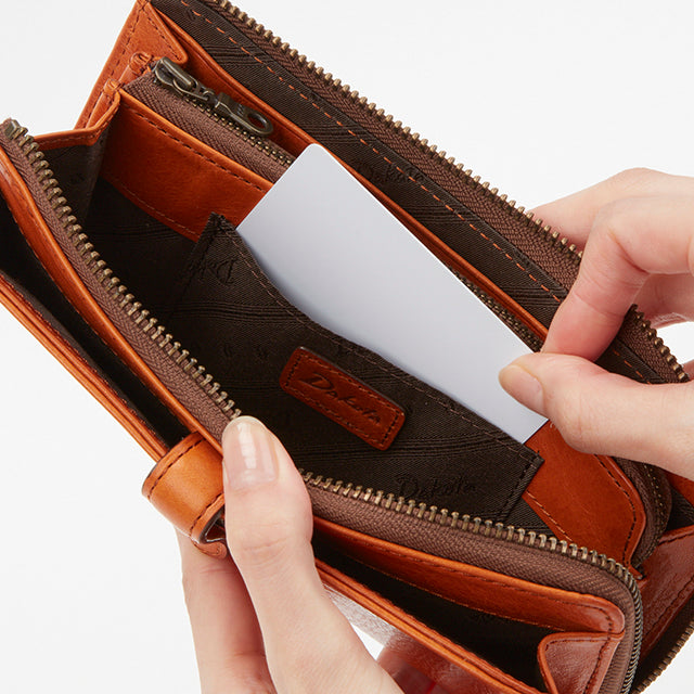 お客様からの声を受け、ショルダー紐の長さを旧シリーズより約15cm短くし、より使いやすく改良しました。また、ベロ付きのフロントポケットは、スマートフォンを入れる方も多いので、スナップボタン部分に生地を貼り、傷付きにくく改善。斜め掛けした時にこぼれにくい絶妙なバランス感や、小銭が取り出しやすい深さ等、使い勝手の良い仕様はそのままで、より快適にお使いいただけるはずです。一般的な長財布のサイズなので、普段は長財布としてバッグの中に入れることができ、中身を入れ替えることなく持ち歩けます。