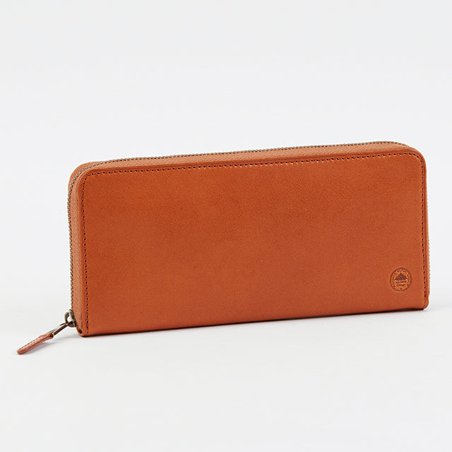 厚みと高さを抑えたラウンドファスナー式長財布です。紙幣がちょうど入る高さに設計し、片手で持ちやすいスマートなサイズ感にしました。内仕様は、左右対称のシンプルなデザインにすることで使いやすくしました。カードが10枚収納でき、紙幣を折らずに収納できるので、つい財布の中身が増えてしまう方にもオススメです。