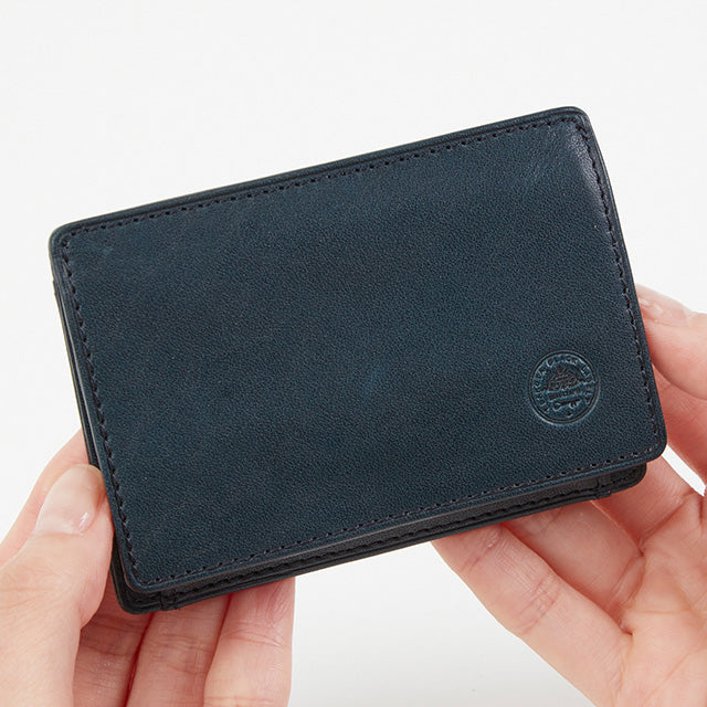 横長フォルムが印象的な小銭入れです。四方口で大きく開くので小銭の出し入れがスムーズに行えます。背面には、カードポケットがあるので、ICカードやクレジットカード、免許証等を入れることができ非常に便利です。