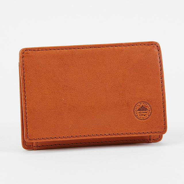 国産原皮を植物タンニンで鞣し、0.8mmまで薄く漉いてから仕立てました。柔軟性やしっとりとした手触りにするために、オイルを含ませグレージング加工で滑らかさと美しい光沢を加えました。そのため、薄くて軽いだけでなく品のあるフォルムに仕上がっています。