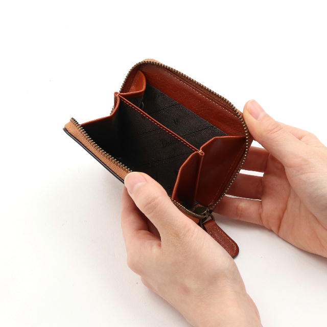 取り外しのできるキーリングが付いた小銭入れです。最小限の小銭やカードの収納に適しています。コンパクトで、日常的に活躍してくれるアイテムです。