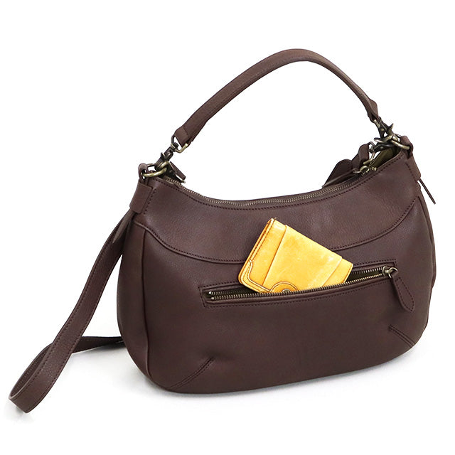 ワンハンドル&ショルダーの2wayバッグ。ハンドル・ショルダーはどちらも着脱可能なので、未使用時は外してスッキリとお持ちいただけます。下部から上部にかけてスリムになっているので、肩にかけた時体に寄り添ってくれます。スッキリとしたフォルムですが、横幅や底マチがしっかりあり、見た目以上の収納力があります。