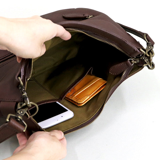 しなやかでボリューム感のあるレザーを贅沢に使用したバッグ。シンプルながらこだわった、日本の丁寧なモノづくりが感じられるアイテム。素材の魅力を最大限に生かしたシンプルなデザインで、どんなスタイルにも寄り添ってくれます。