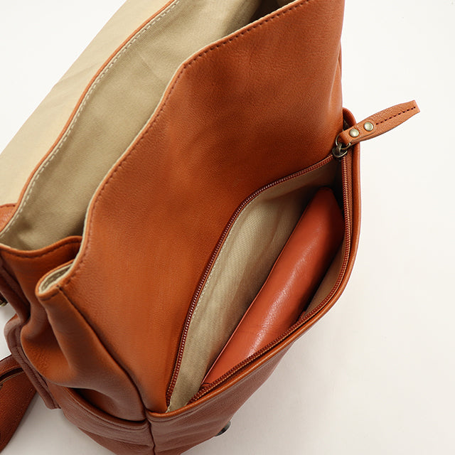 細やかなシボ感が特徴のやぎ革を、機能的なリュックに仕立てました。カジュアルになりがちなリュックも、レザー仕立てなら落ち着いた雰囲気でお持ちいただけます。普段使いはもちろん、ご旅行などにもおすすめです。