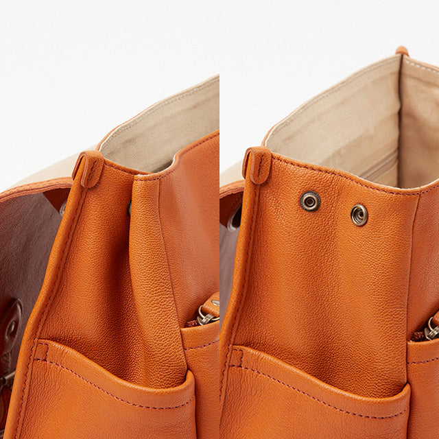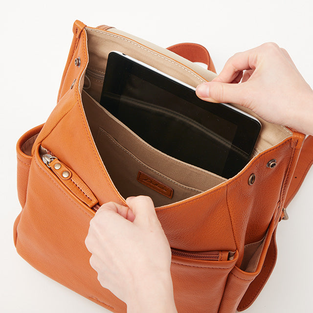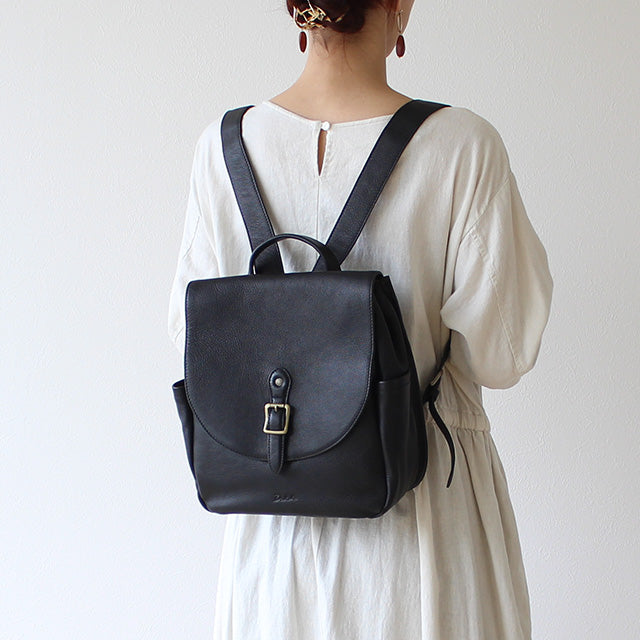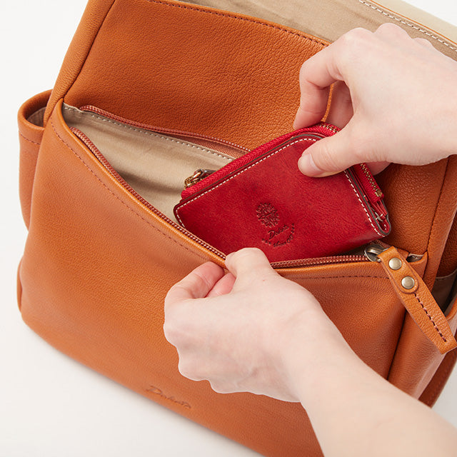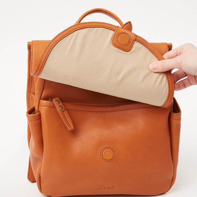 細やかなシボ感が特徴のやぎ革を、機能的なリュックに仕立てました。カジュアルになりがちなリュックも、レザー仕立てなら落ち着いた雰囲気でお持ちいただけます。普段使いはもちろん、ご旅行などにもおすすめです。