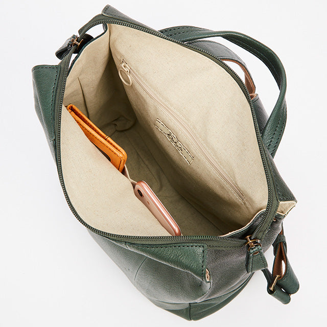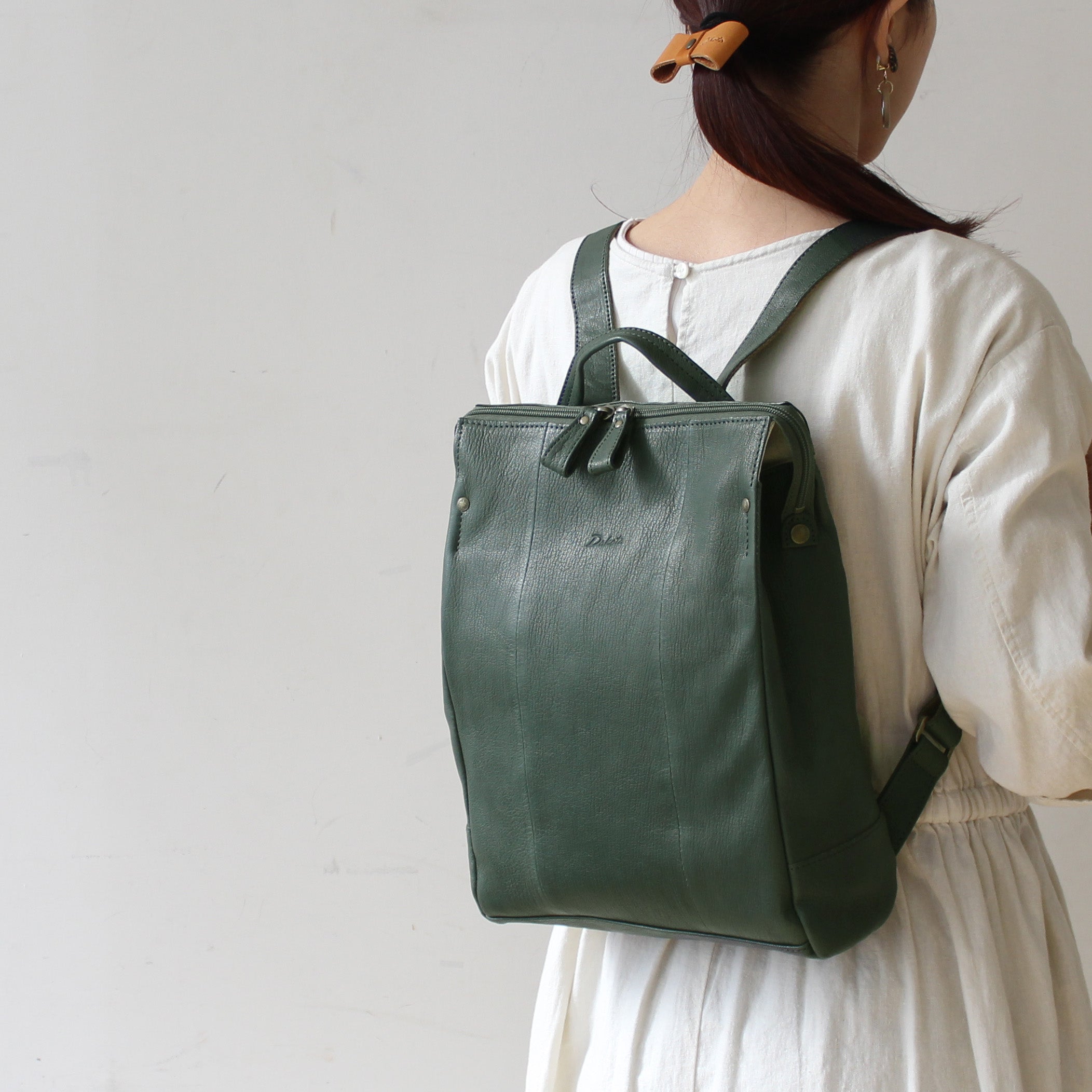 軽量なやぎ革を使用しているので、軽やかに持つことができ、日常バッグにぴったりです。革本来の風合いを活かすため、革表面の加工は最小限にしているので、シボ感や色合い等パーツによって風合いが異なるのが特徴です。また、革本来の経年変化を楽しむことができるシリーズです。