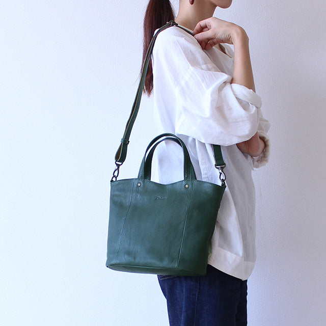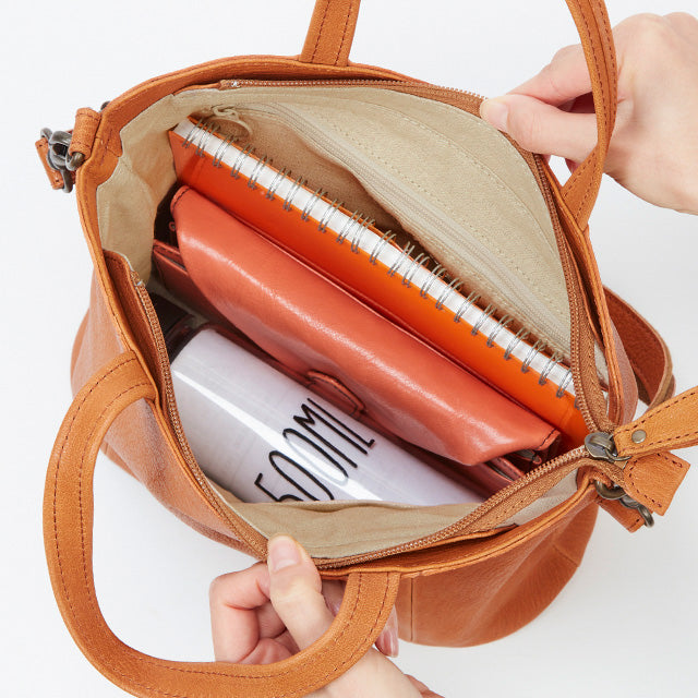 デイリーに使いまわしのしやすい2wayバッグです。長財布や500mlペットボトルがぴったり入る程よいサイズ感です。口元を緩やかな曲線にすることで、カジュアル過ぎず優しい印象に仕上げました。