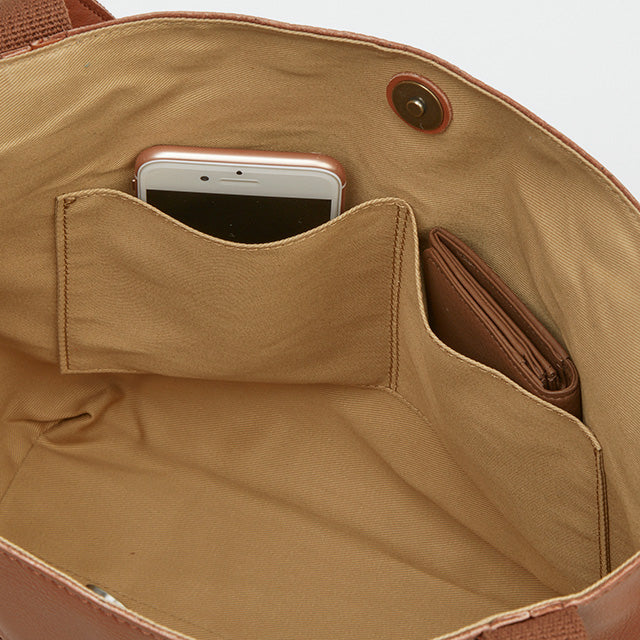 長財布や500mlペットボトルが縦でも横でもちょうど入るくらいの、デイリーユースに便利なサイズのトートバッグ。ハンドルは長めなので肩にも掛けやすく、実用的なデザインです。