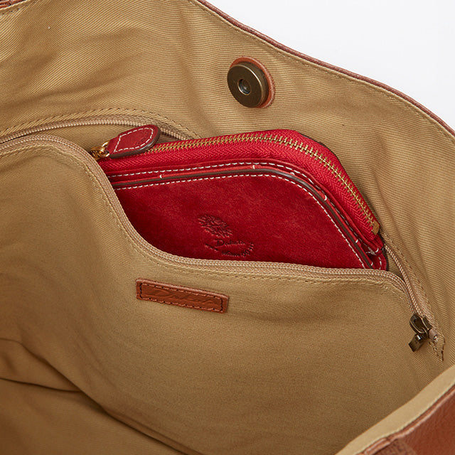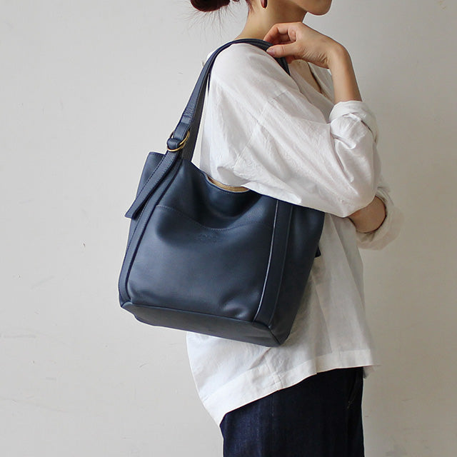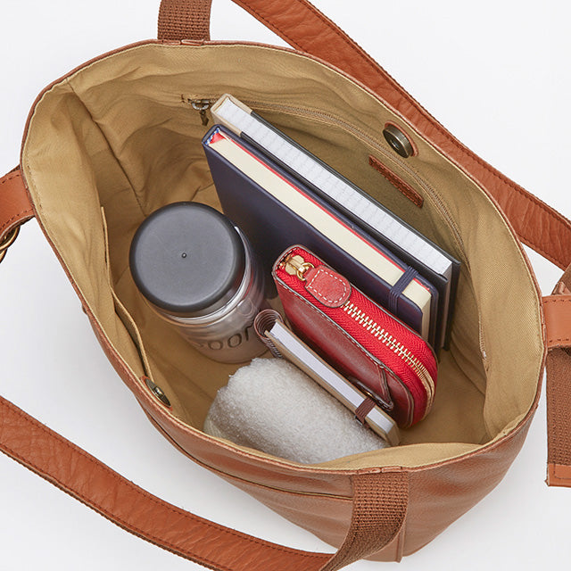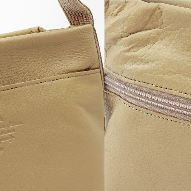 柔らかなタッチ感と、発色の良さが魅力の牛革で仕立てました。革の色ムラ等をなるべくおさえ、比較的お手入れのしやすい風合いに仕上げているので、気負わずデイリーに持ち歩けます。ざっくりとシンプルなフォルムですが、収納ポケットもしっかりあるので、使い勝手も抜群です。