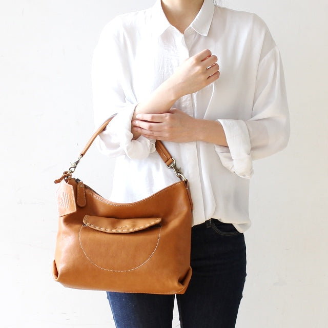 ナチュラルなレザーに太めのステッチを合わせ、クラフト感漂うバッグに仕立てました。