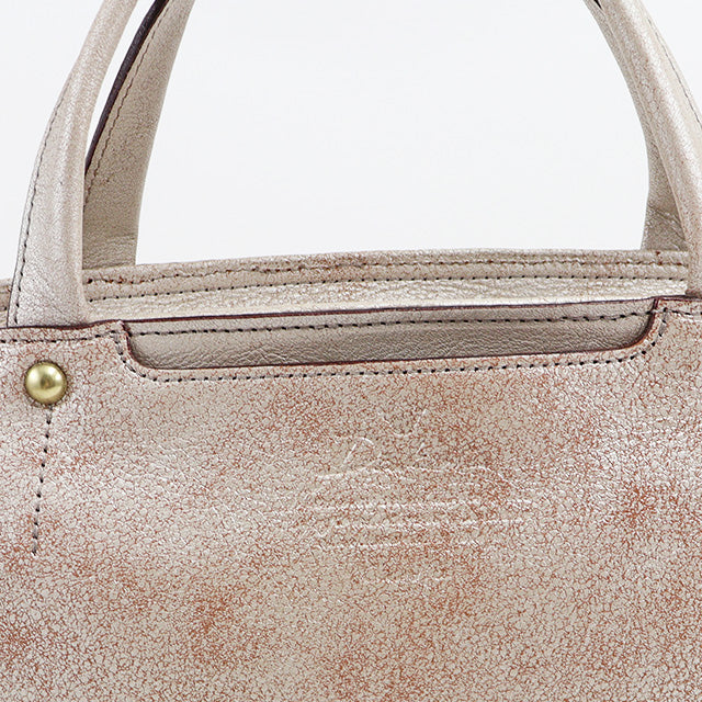 シルバー箔加工を施した牛革で仕立てることで、Dakotaらしいカジュアルさを残しつつ華やかな印象に仕上げました。