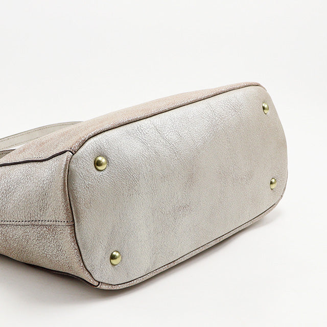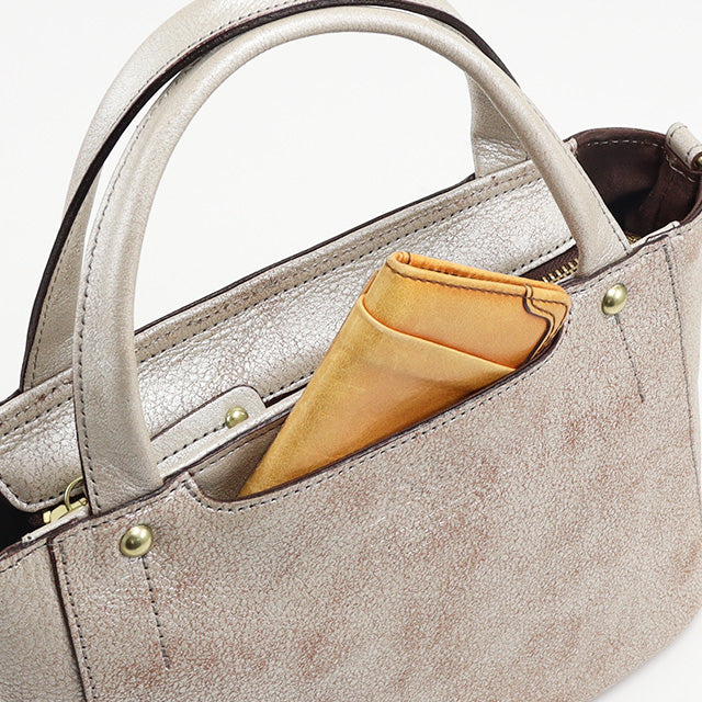 使い勝手のよい2wayバッグです。底鋲付きでしっかり自立する仕立てなので、荷物も入れやすく、フォルムもキレイに持ち歩けます。