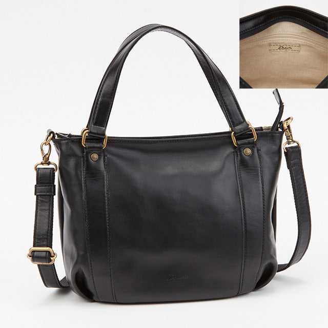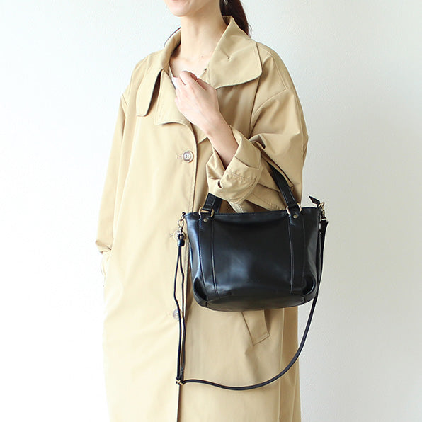 底マチの丸みのあるフォルムがかわいい2wayバッグ。長財布がちょうど入るコンパクトなサイズ感。取り外し可能なショルダーストラップ付きで、その日の気分に合わせて持ち方を変えることもできます。