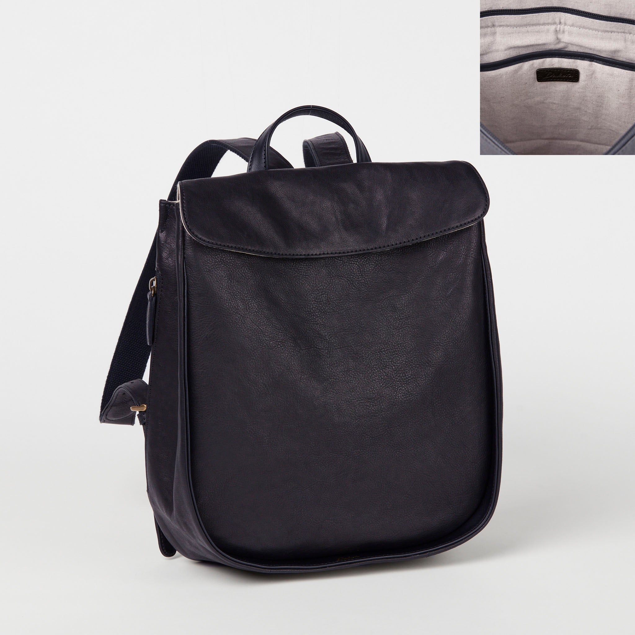 かぶせデザインがポイントのA4サイズ対応リュック。マグネット付きかぶせの下はファスナー開閉になっています。内部には、折り畳み傘などの収納にも便利な横長の吊りポケットや、タブレットが入るクッション付き背面ポケットが備わっており、お仕事でもプライベートでも使いやすい仕様に。