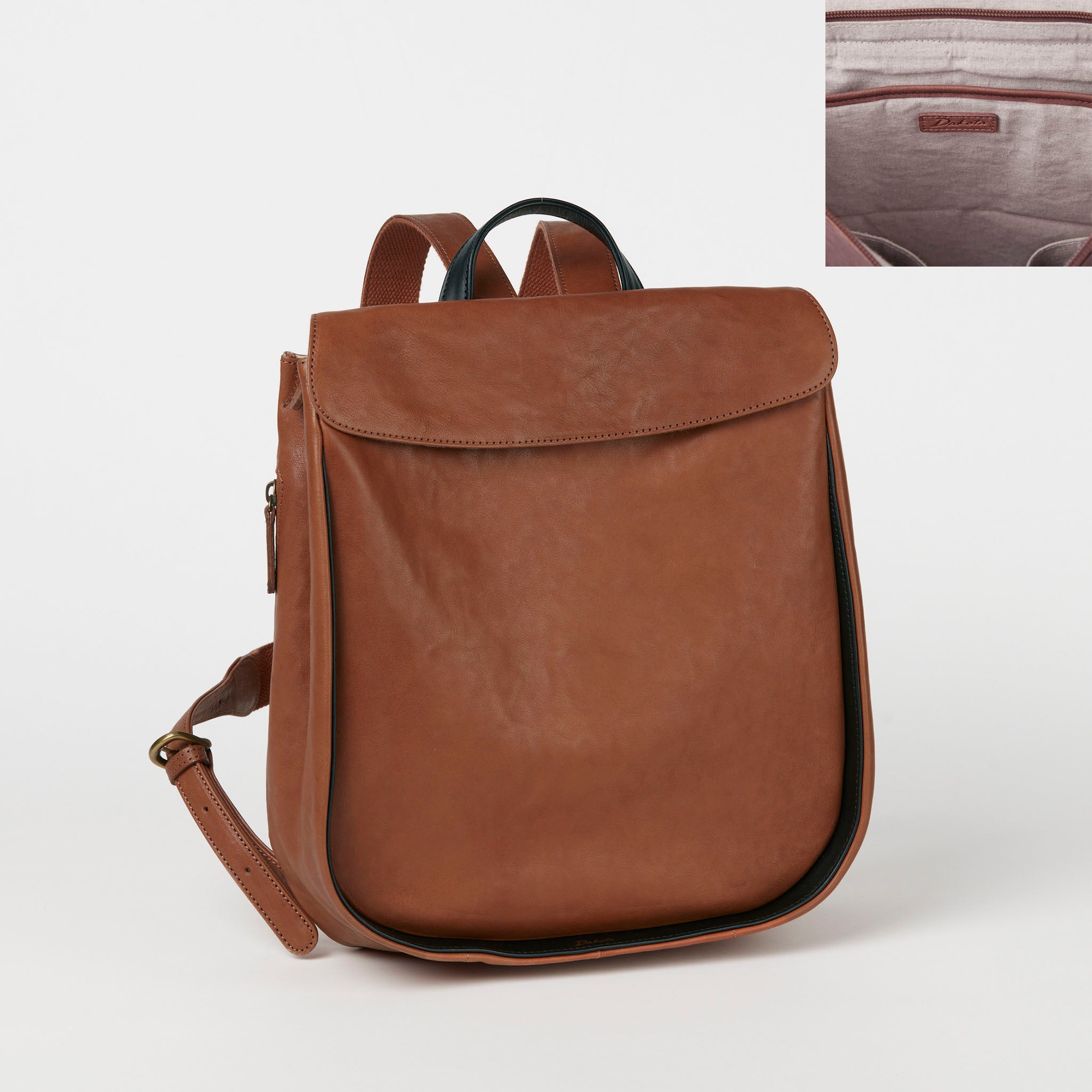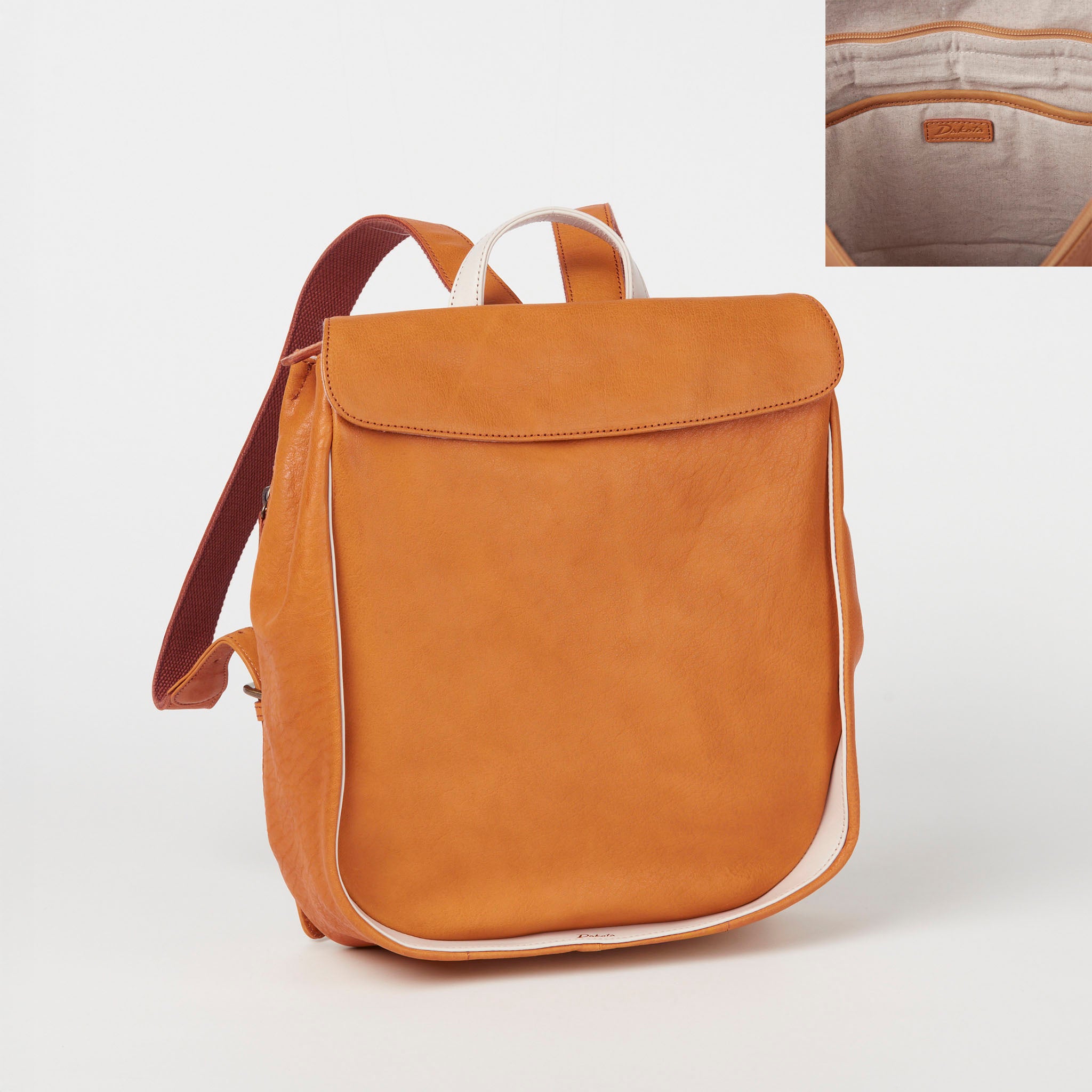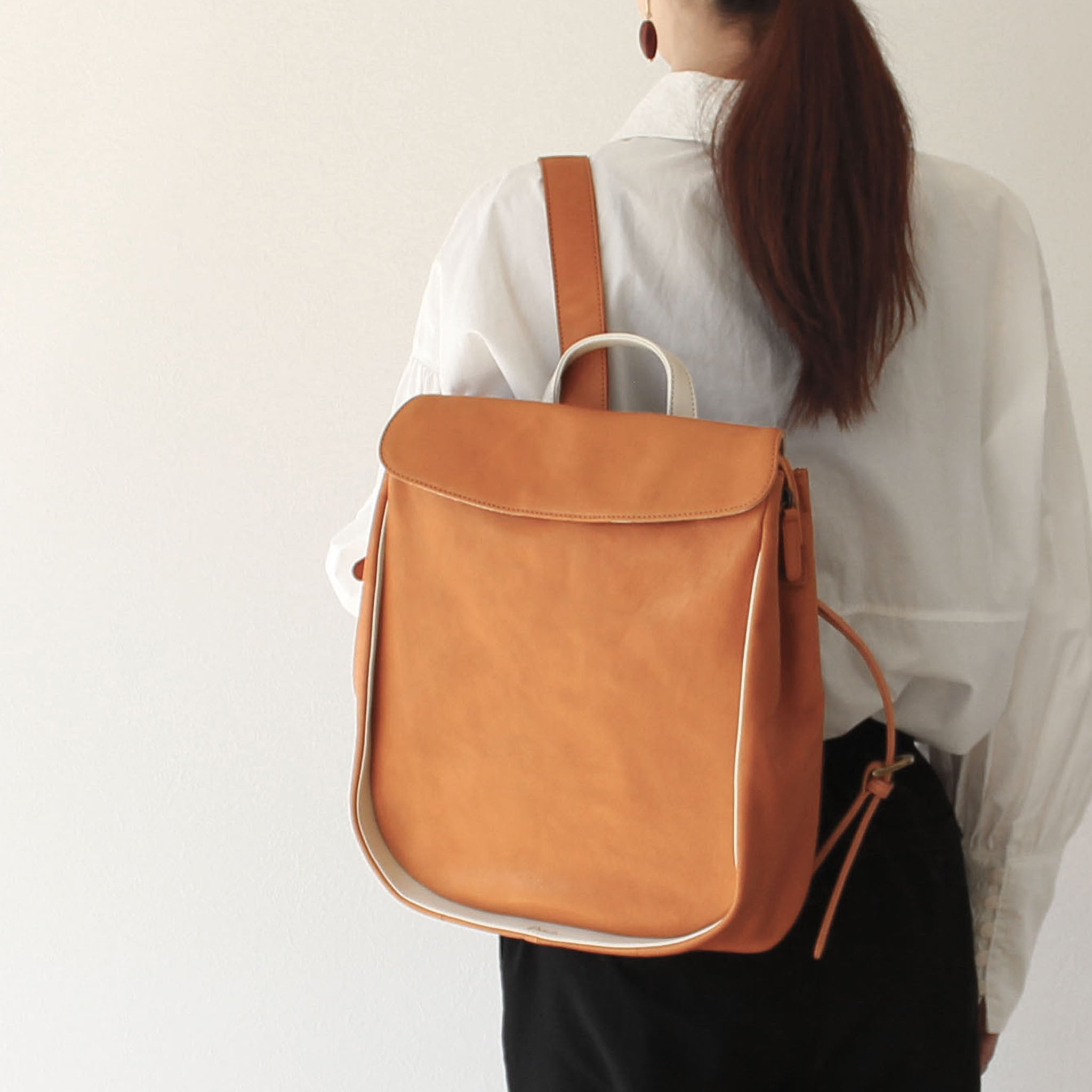 ヒートシュリンク加工を施した、軽やかで柔らかな手ざわりのレザーを使用。大人のカジュアル感が引き立つ、オンオフどちらでも持ちやすいバッグに仕上がっています。正面の特徴的なフチのデザインとそこに小さくあしらわれたブランドロゴが上品で洗練された印象を与えてくれます。