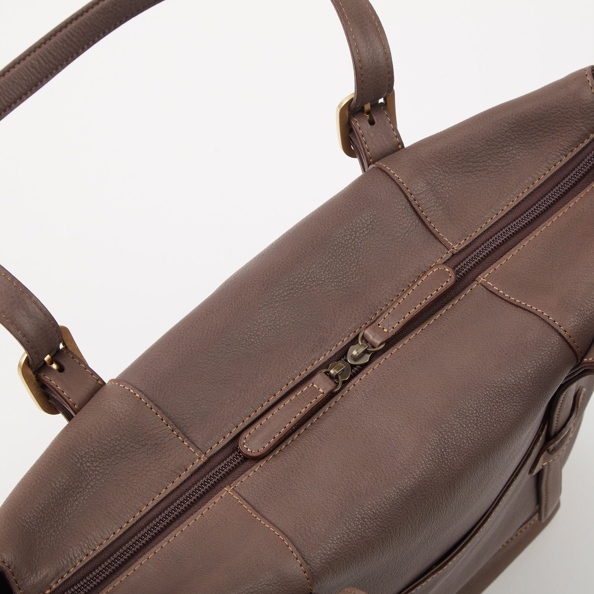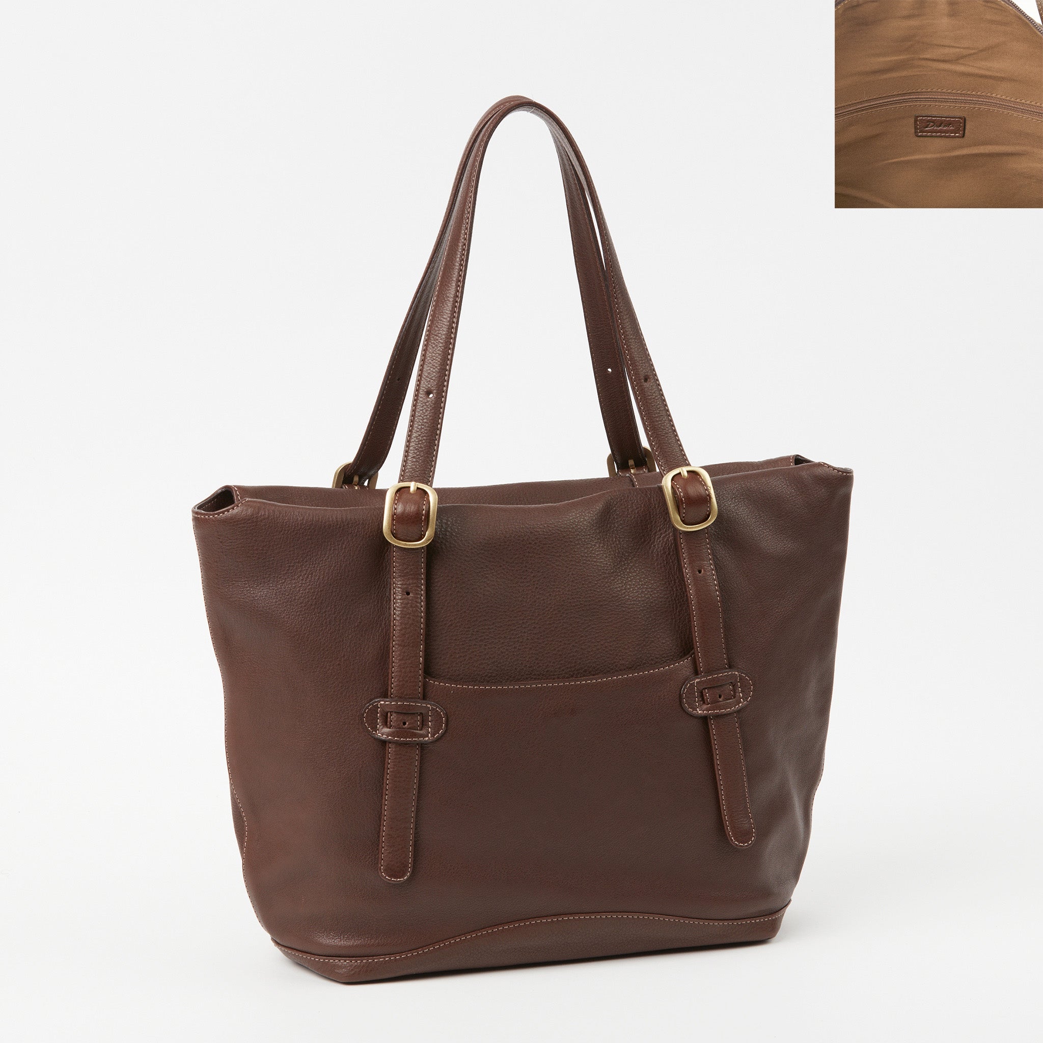 A4サイズの荷物が縦横どちらの向きでも入って、ビッグサイズのトートバッグ。 上部はファスナー開閉で、お出かけ時にも安心のデザインです。 持ち手部分は4段階で調節でき、手提げから肩掛けまで、お好みのスタイルでお持ちいただけます。
