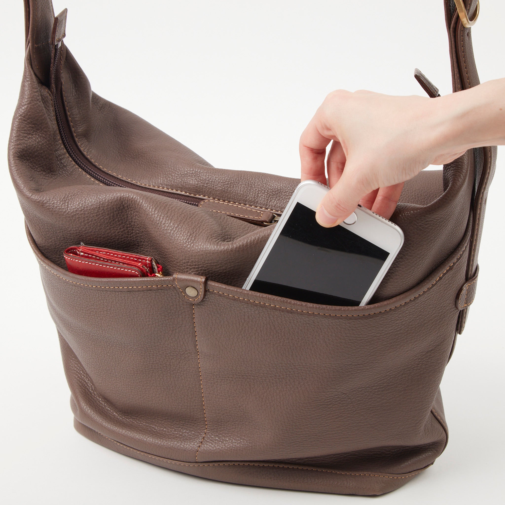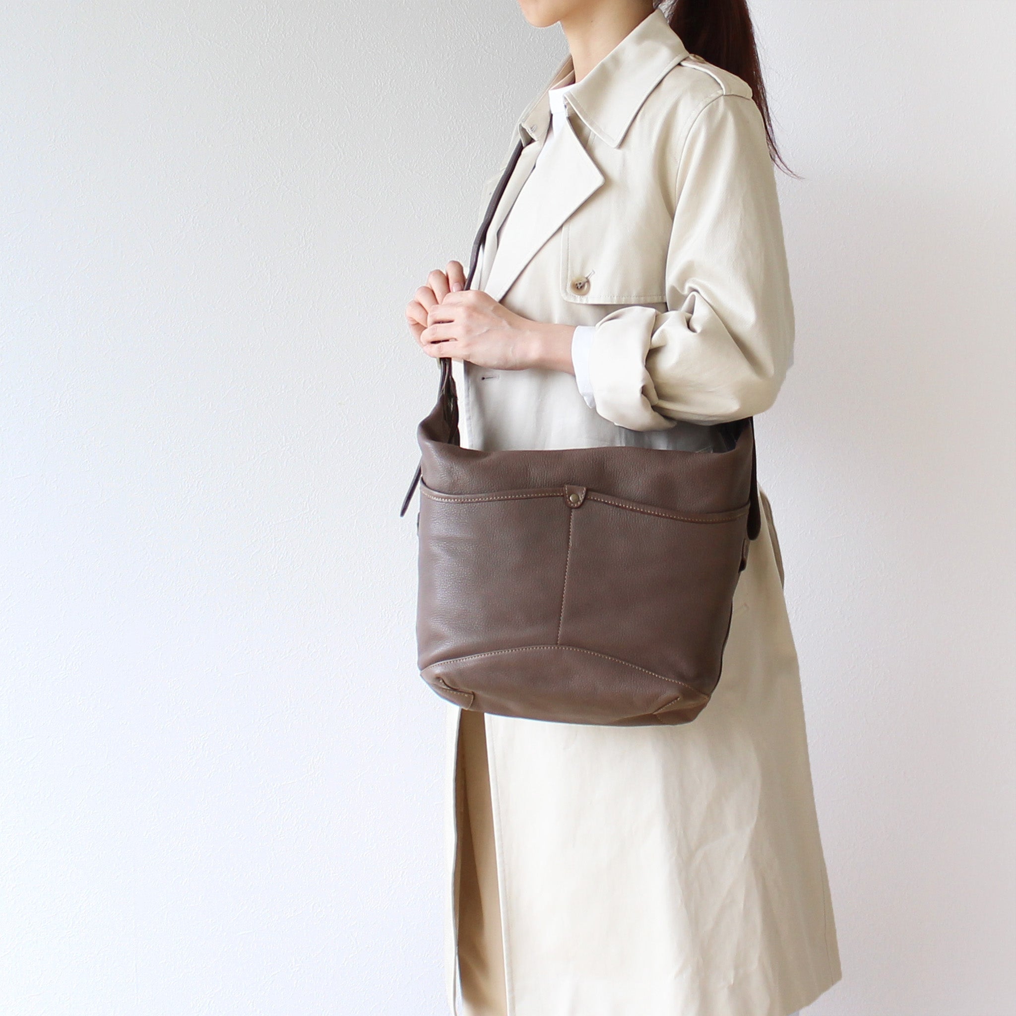 ナチュラルなムラ染めレザーの表情と、触ると革の表面がキュッと鳴く「鳴き革」のしっとりとした手触りが魅力のシリーズ。ツヤのあるオイルレザーながら軽やかで、持った時に体に沿うような仕上がりに。また、日本のバッグ職人が丁寧に仕立てることで、細部までつくりの良さが伝わる、カジュアルでありながら品のあるアイテムに仕上げました。