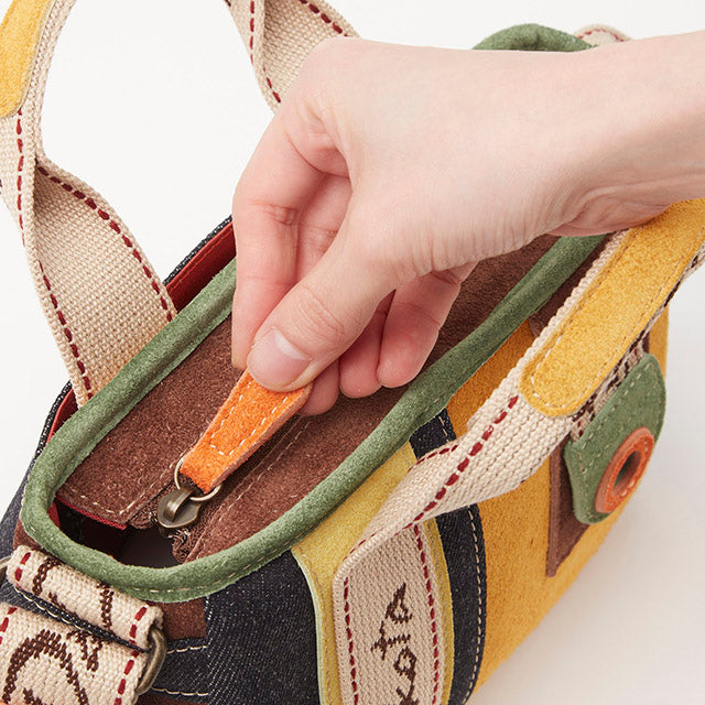 鮮やかな色使いとオリジナルテープがアクセントになった、ポップでおしゃれな2wayバッグ。長財布がしっかり収納できるサイズ感で、身軽にお出かけいただけます。