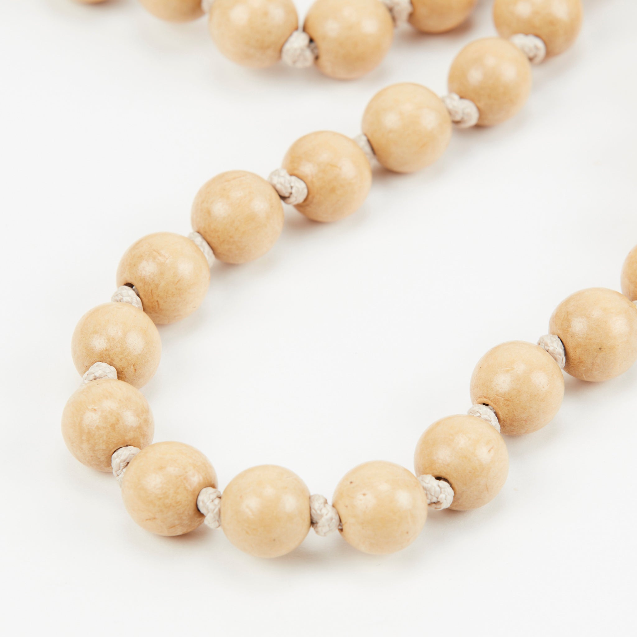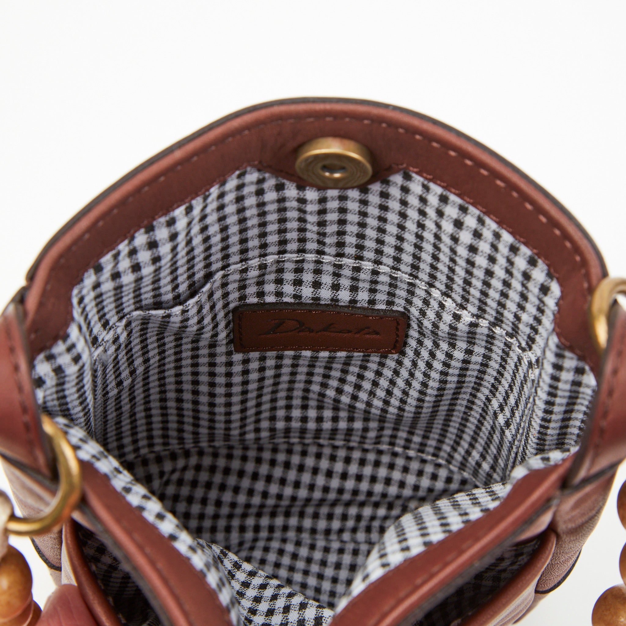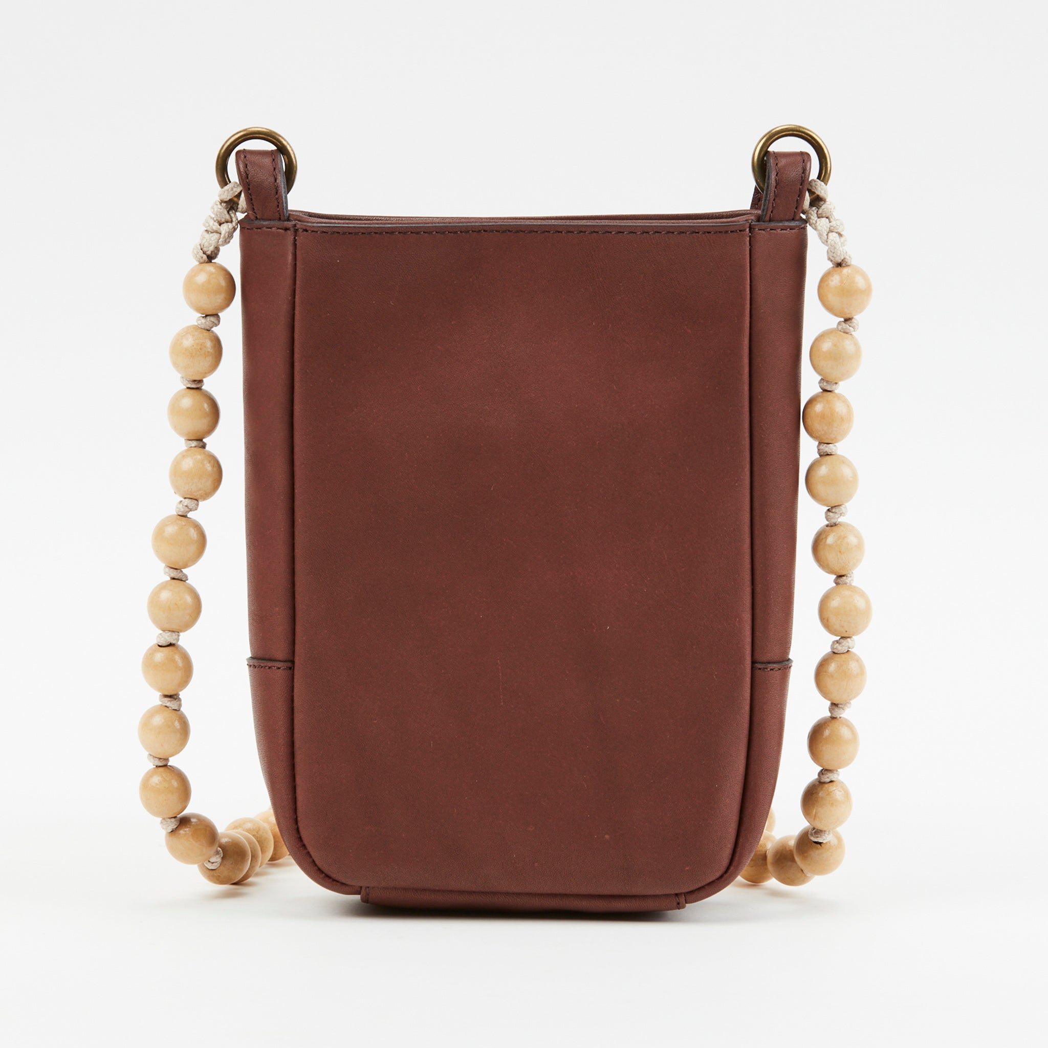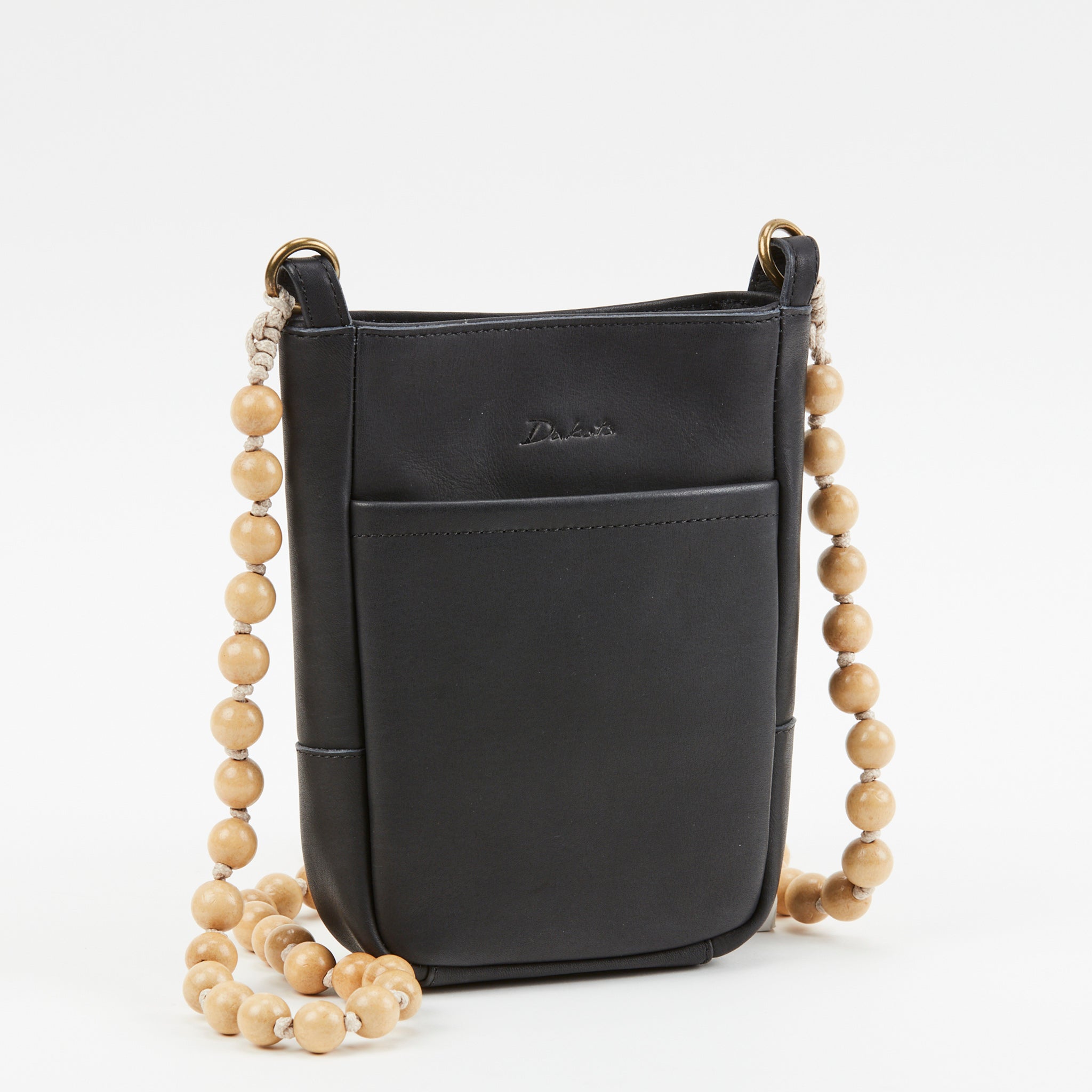 ウッドビーズのショルダー紐が目を引くミニショルダーバッグ。