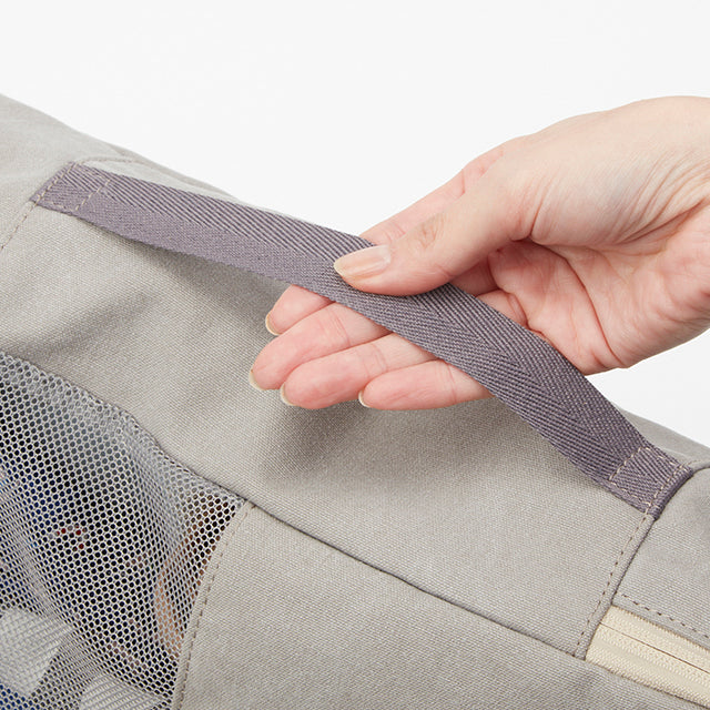 厚みのある衣類もコンパクトに収納できる、大サイズのパッキングポーチです。引手部分はリングになっているので、スムーズに出し入れが可能です。