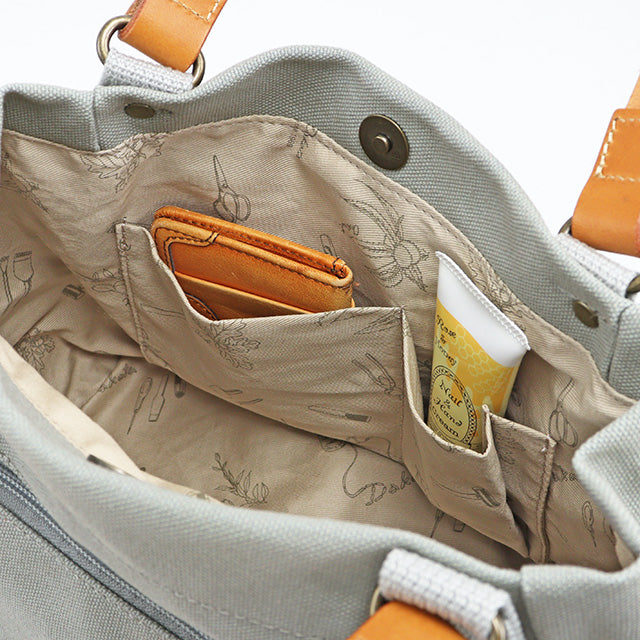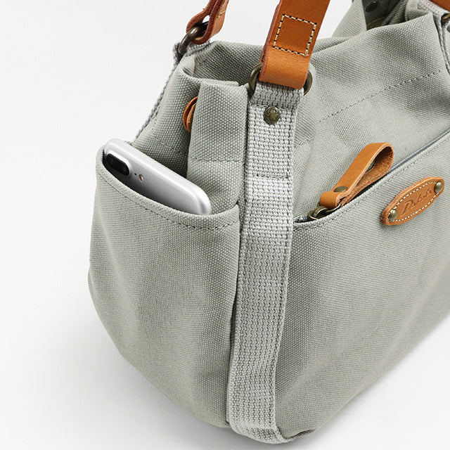 ちょっとしたお出かけに最適な2フェイスミニトート。小ぶりな見た目ながら、マチ幅がしっかりあるので、長財布やペットボトル、手帳などが楽に入ります。内外のポケットも充実しており、こまごましたものも整理して入れられる便利なデザインです。