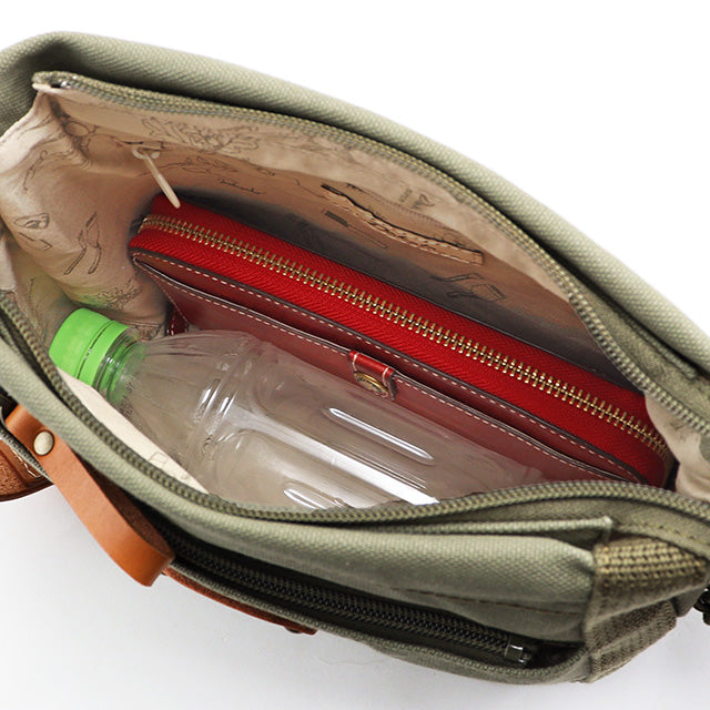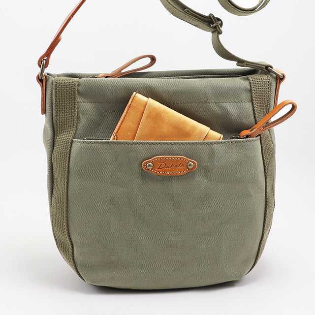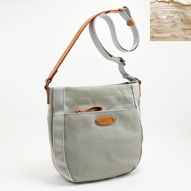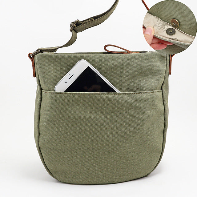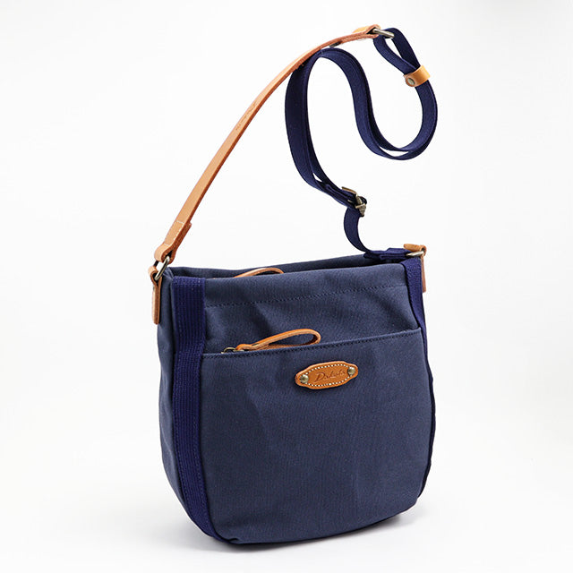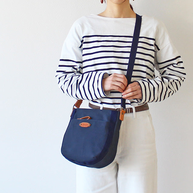 コロンと可愛らしいフォルムのショルダーバッグです。長財布が横向きでちょうど入るサイズ感で、デイリーに使うことができます。ショルダー紐の片側にはヌメ革を使用し、ラフ過ぎない大人カジュアルな印象に仕上げました。