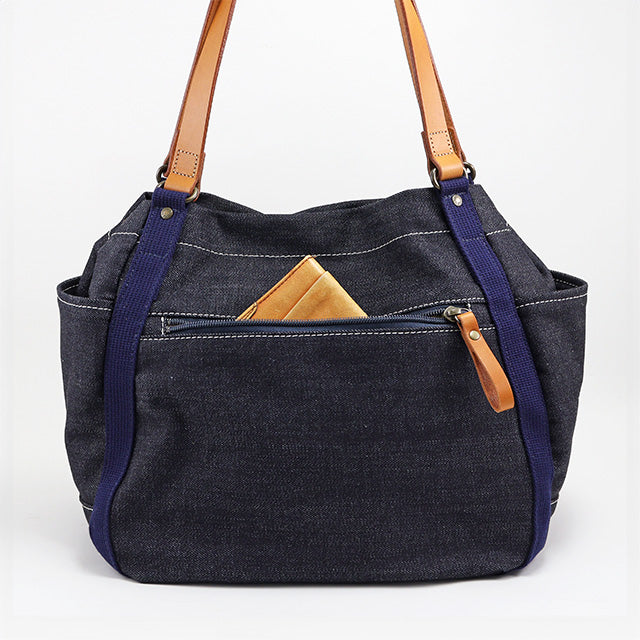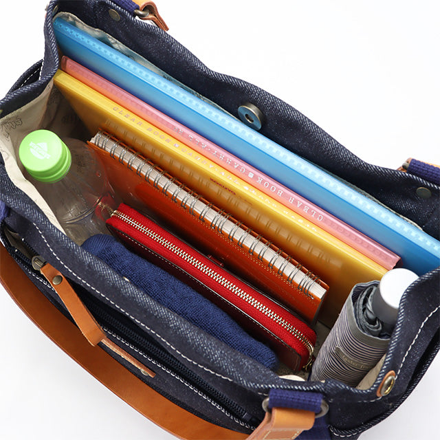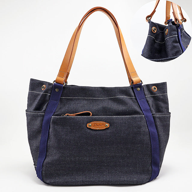 コロンと可愛らしいフォルムにさわやかなデニム生地を合わせた帆布バッグシリーズ