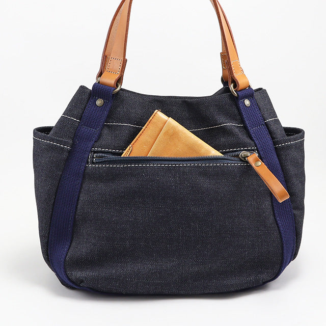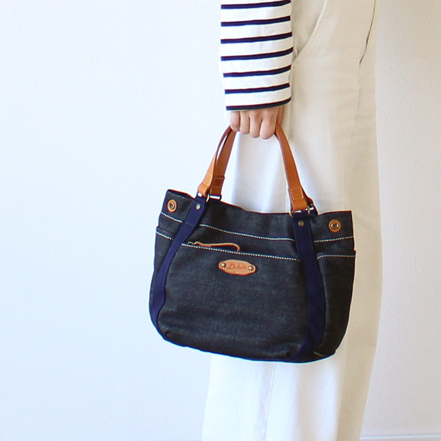 コロンと可愛らしいフォルムにさわやかなデニム生地を合わせた帆布バッグシリーズ