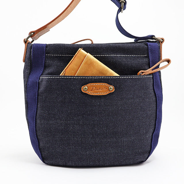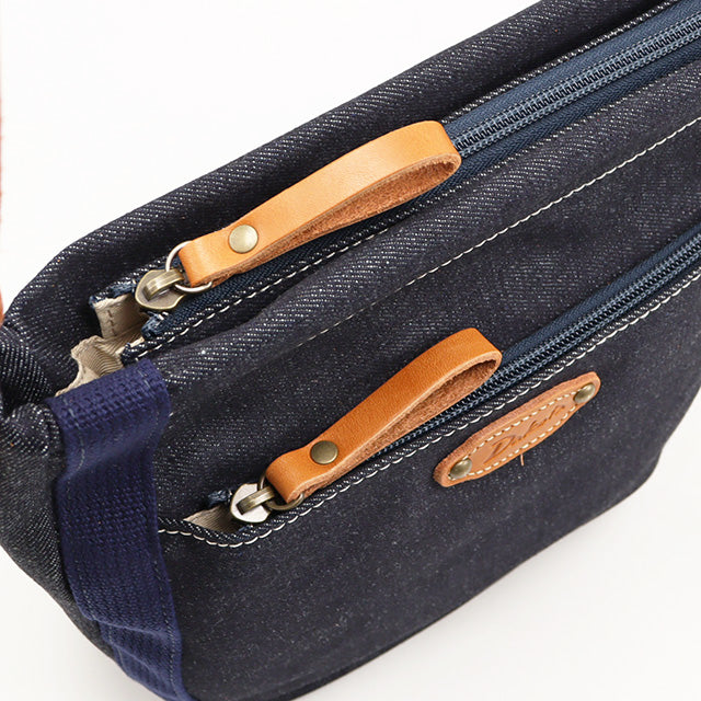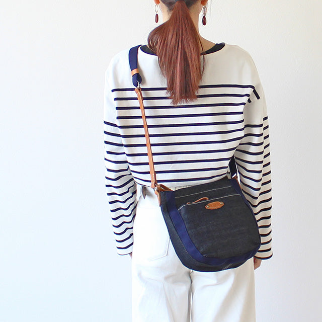 コロンとフォルムのショルダーバッグです。長財布が横向きでちょうど入るサイズ感で、デイリーに使えます。ショルダー紐の部分にはヌメ革を使い、ラフ過ぎない大人カジュアルな印象に仕上げました。