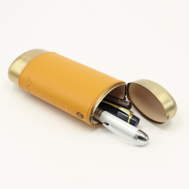 金属製の眼鏡ケースに牛革を巻いた高級感のある眼鏡ケース
